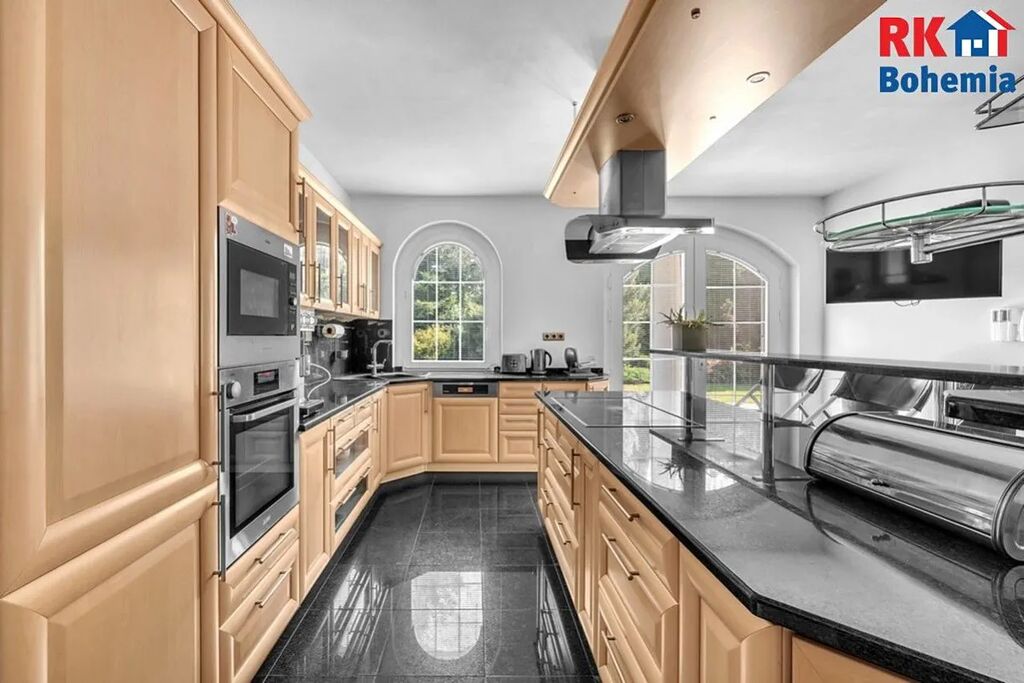 Bonusem je velmi citlivě upravená zahrada ze zavlažováním, se vzrostlými stromy a s travnatou plochou na heliport či tenisové kurty. Pozemek s vyhřívaným krytým bazénem a jezírkem velmi dobře doplňuje výjimečnost samotné stavby. Může sloužit pro rodinnou relaxaci a odpočinek a rovněž dokáže nabídnout potenciál v případě komerčního využití.