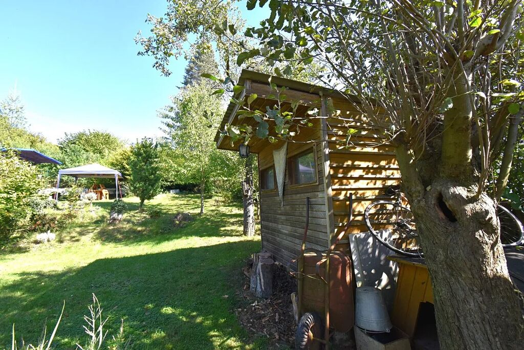 Součástí pozemku je suchý záchod a praktická kůlna na nářadí.
