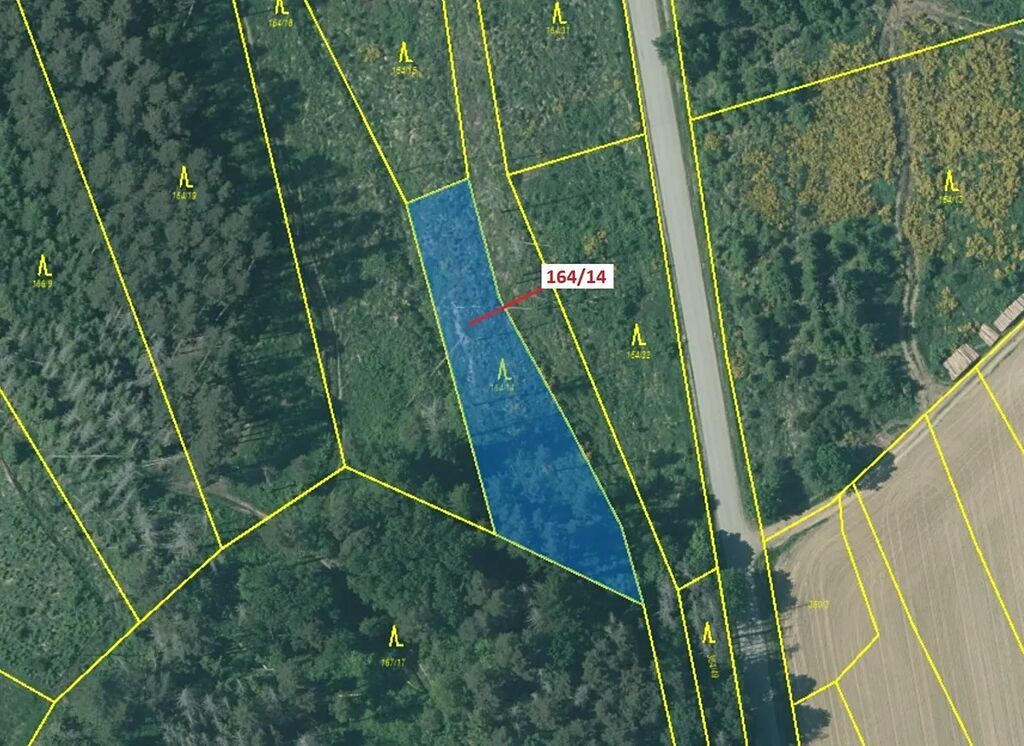 Lesní pozemek o výměře 1580 m2, parcelní číslo 164/14, podíl 1/1, katastrální území Ostojkovice, obec Budíškovice, obec s rozšířenou působností Dačice, okres Jindřichův Hradec, Jihočeský kraj.