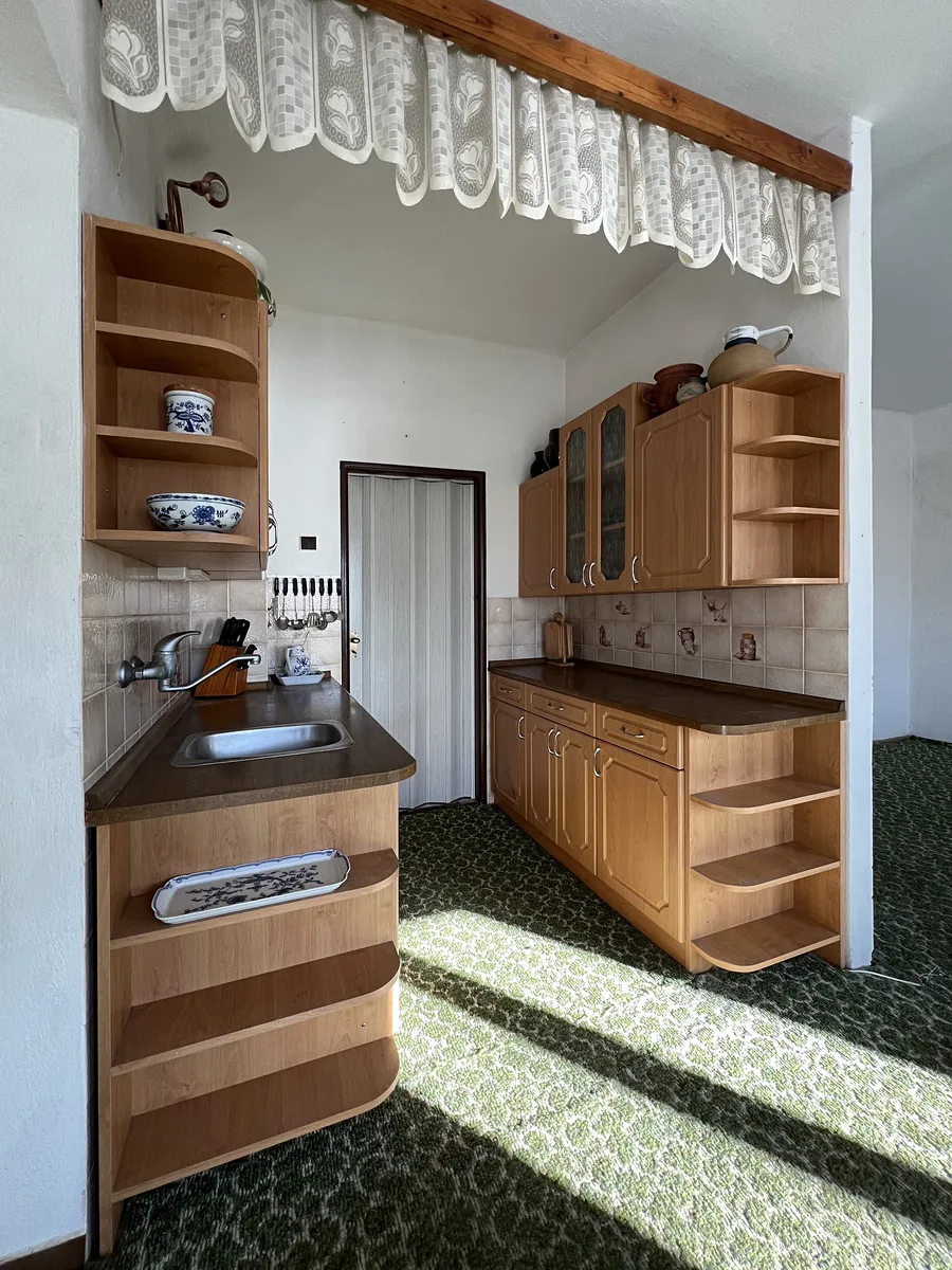 - Pozemek 439 m²: malá zahrádka ideální pro relaxaci, za domem dvě garáže a dílna.