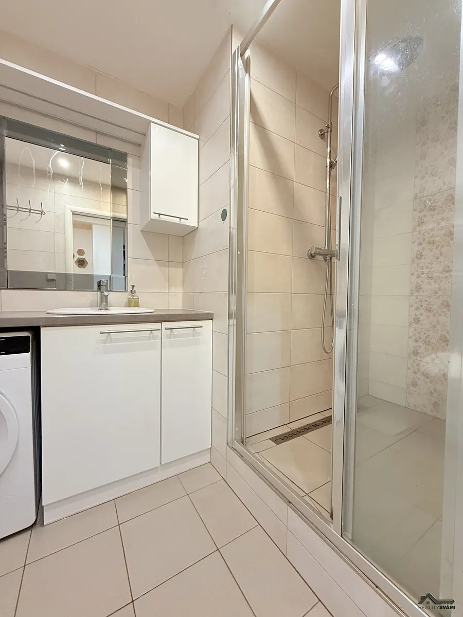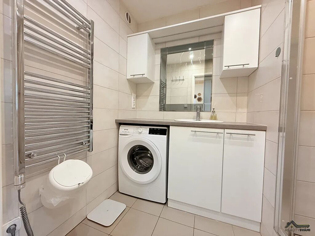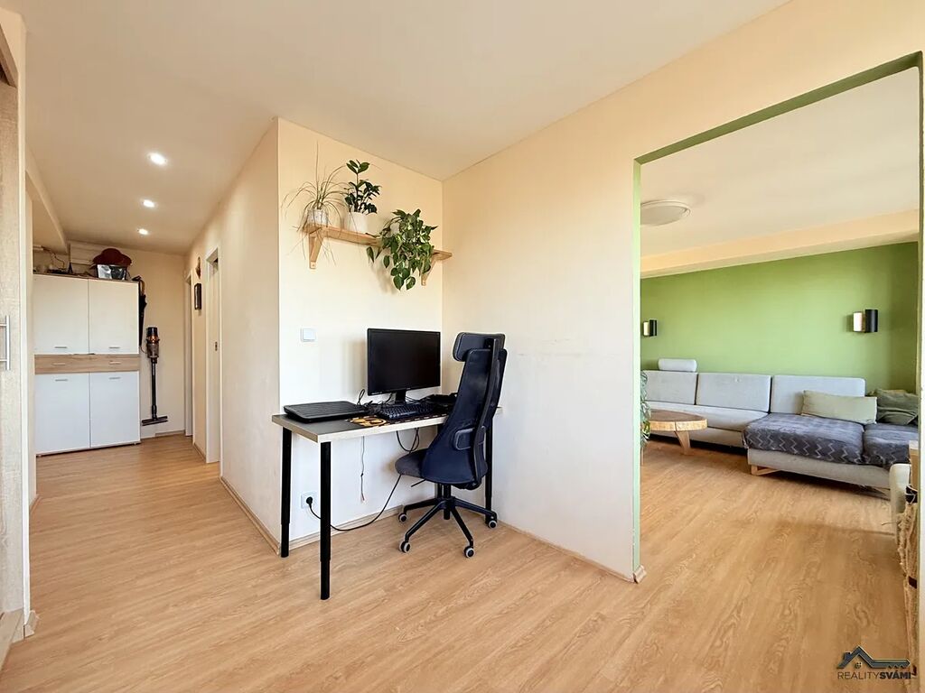 Rozdělení bytu bylo při rekonstrukci změněno, a to tak, že vznikly 2 samostatné pokoje, jako je ložnice a obývací pokoj, který je navíc spojený s kuchyňským koutem a jeden z pokojů je použitý jako průchozí pracovna. Byt je umístěný v desátém patře panelového domu po revitalizaci. Prošel před několika lety kompletní rekonstrukcí, při níž bylo změněn celkový prostor bytu, upraveny příčky, vyzděno bytové jádro. Dveře bytu byly umístěny ve většině případů do pouzder, čímž byl zvětšený obytný prostor. Dále byla měněna kuchyňská linka, která má vestavěné spotřebiče, včetně myčky nádobí. V koupelně nechybí velkorysý prostor sprchového koutu, ale našlo se místo i na pračku, nebo žebříkové topení, které díky elektrickému přívodu můžete používat i v létě. Nezapomnělo se na rozvody elektřiny a vody, plovoucí podlahy s kombinací dlažby na toaletě a v koupelně, snížení stropů, pomocí sádrokartonu v předsíni a nechybí i nové omítky. K bytu jsou 2 balkóny, kdy jeden z nich má téměř 8m2 a také sklepní kóje.