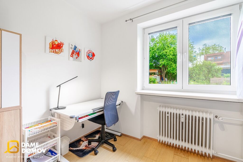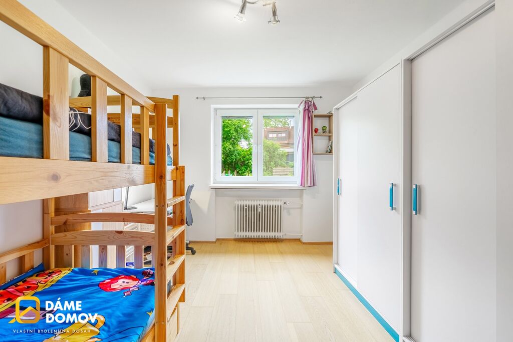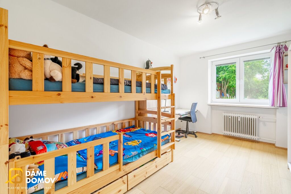 Byt se nachází v 1. nadzemním podlaží. Dispozice nabízí samostatnou kuchyň, světlý obývací pokoj, útulný dětský pokoj a koupelnu vybavenou rohovou vanou.