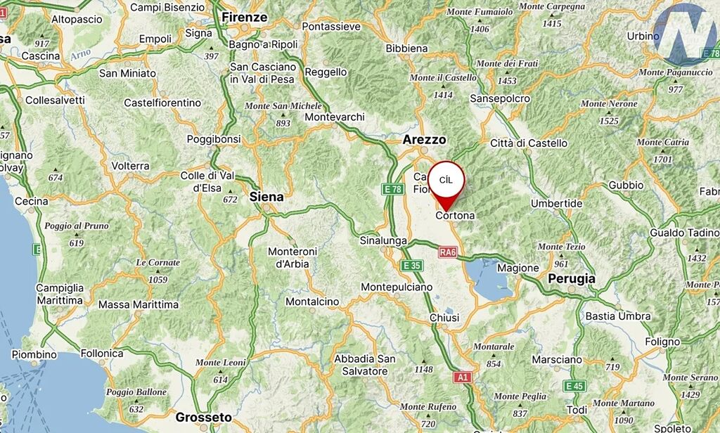 Rezidence, zasazená do 2,4 hektaru vlastních pozemků, zaručuje absolutní klid a soukromí, zároveň si však uchovává rychlou dostupnost k veškeré občanské vybavenosti. Krátká romantická procházka, nebo 5-ti minutová jízda autem vás dělí od proslulých cortonských restaurací a kaváren, kde můžete ochutnat pravé kouzlo la dolce vita.