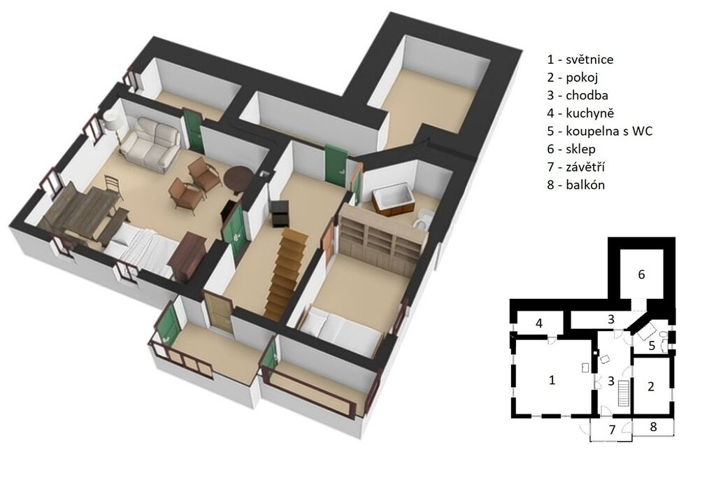 Nabízíme k prodeji chalupu v Jablonci nad Jizerou v částí Dolní Dušnice. Chalupa se pyšní umístěním v klidné malebné rekreační lokalitě, v údolí s horským potokem, obklopena lesy a skálami. Přes závětří se vstoupí do chalupy, která disponuje prostornou světnicí s krbovými kamny, na kterou navazuje malá kuchyně. Dále je v přízemí pokoj, koupelna s WC a v zadní části kamenný klenutý sklep. Po dřevěném schodišti se dostanete do podkroví, kde jsou dva pokoje, půdní prostor a velká dílna. Pokoje lze vytápět i centrálně kamny na tuhá paliva s rozvodem do radiátorů. Užívání chalupy bylo ponecháno ve skromném nenáročném režimu s možností rozvoje dle představ nového vlastníka. Je to ideální místo pro rekreační i víkendové pobyty. Nabízí svojí strategickou polohou velké množství míst zimních i letních aktivit nejen v rámci západní části Krkonoš. Nejbližší občanská vybavenost je v Jablonci nad Jizerou. Více informací u makléře.