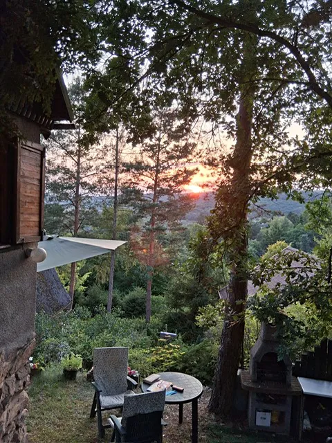 Zahrada je mírně svažitá a je zde krásný výhled. Na pozemku je zděná dílna, terasa a venkovní krb s posezením. Parkování přímo u chaty a přístup od hlavní silnice je po zpevněné obecní komunikaci. V okolí je absolutní klid a soukromí.