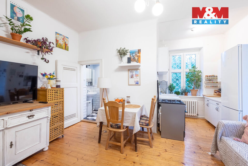 Nabízíme k prodeji krásný byt 3+kk o užitné ploše 75 m², situovaný v klidné části Podolí, v ulici Lopatecká. Zvýšené přízemí téměř na úrovni prvního patra. Součástí prodeje je převod družstevního podílu na pozemku u domu, kde má každý byt svou zahradu. K bytu tak je k dispozici oplocená zahrada, cca 80 m². Cihlový dům se třemi nadzemními podlažími a polosuterénem. Byt se skládá z obývacího pokoje s plně vybaveným kuchyňským koutem a dřevěnou podlahou, odkud je vstup do koupelny se sprchou a pračkou. Chodba se vstupem do velkého pokoje s parketami a výklenkem s oknem vhodným pro pracovnu. Výhled do klidné ulice a zahrady. Ložnice je neprůchozí opět s dubovou parketovou podlahou. Vytápění a teplá voda plynovým kotlem. K bytu náleží sdílený sklepní prostor a podíl na půdě. Byt je ve velmi dobrém stavu s množstvím úložných prostor a prakticky plně vybaven. Nabízí tři prostorné místnosti, vhodné pro klidné bydlení. Zastávka autobusu Klikovka, metro Pražského povstání 500 m od domu.