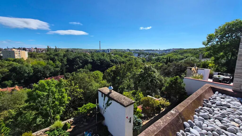 Z oken bytu je nádherný nerušený panoramatický výhled s jižní orientací a do zeleně. Bytový dům je situovaný v klidné, neprůjezdné ulici.