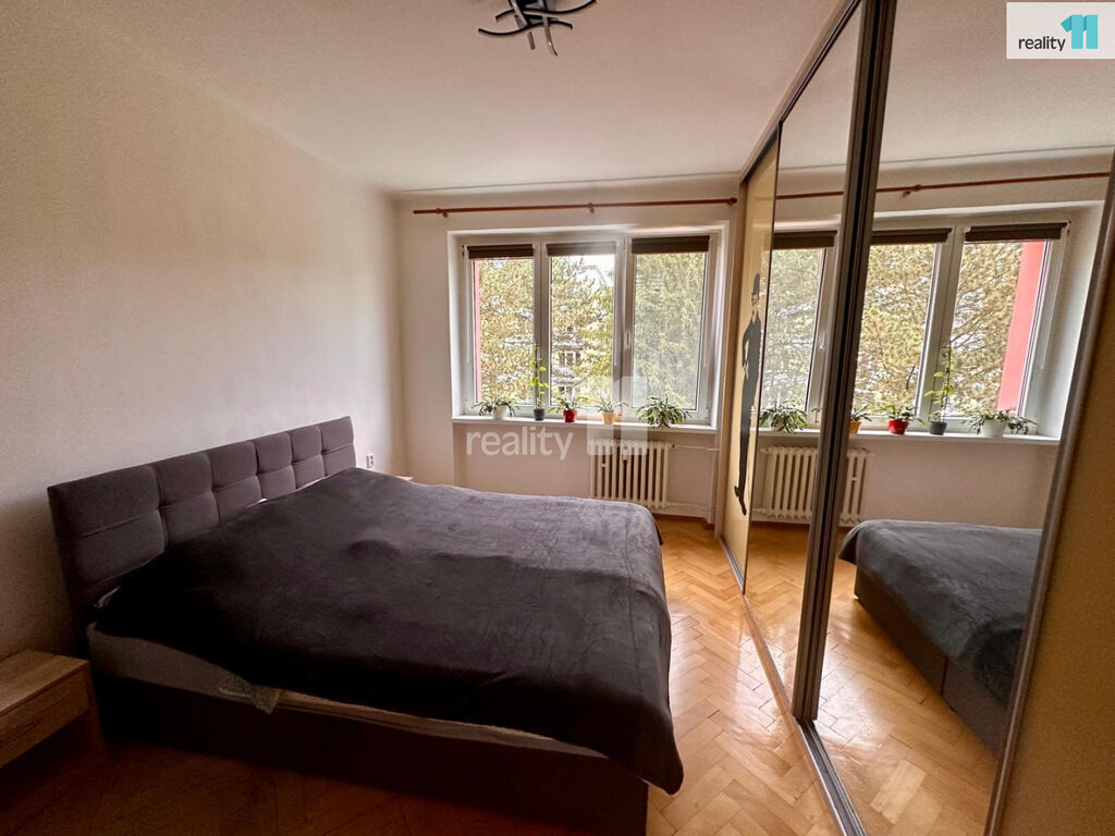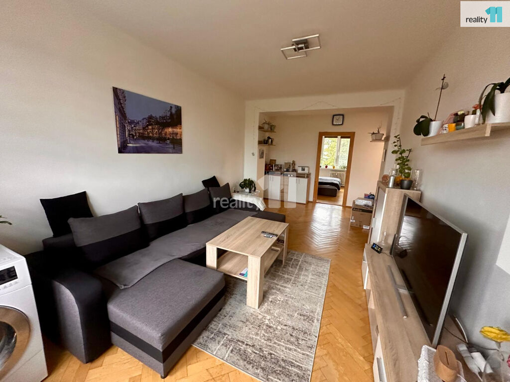 Byt tvoří dva prostorné pokoje, z nichž jeden má vstup na příjemný balkon. V ložnici oceníte velkou vestavěnou skříň přes celou stěnu. Součástí bytu je kuchyňská linka s plynovým sporákem a troubou, koupelna s vanou, samostatné WC a předsíň s úložným prostorem. Podlahy v pokojích zdobí renovované parkety, v předsíni a koupelně je praktické lino. K bytu náleží zděná sklepní kóje s vlastním uzamčením a možnost využívat společnou kočárkárnu a sušárnu.