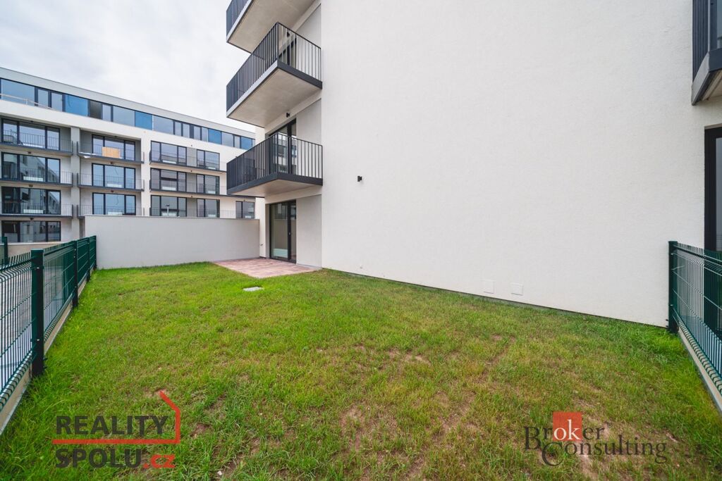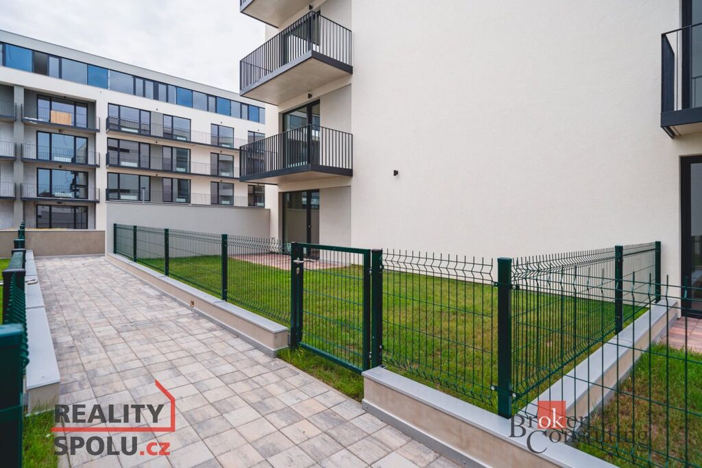 Byt se nachází v 1. podlaží s přímým přístupem na vlastní prostornou předzahrádku o výměře 59 m², ideální pro relaxaci či domácí mazlíčky. K bytu náleží také garážové parkovací stání v 1.PP a ve stejném patře sklep (2,5m2), oboje je ihned u vstupu k výtahům.