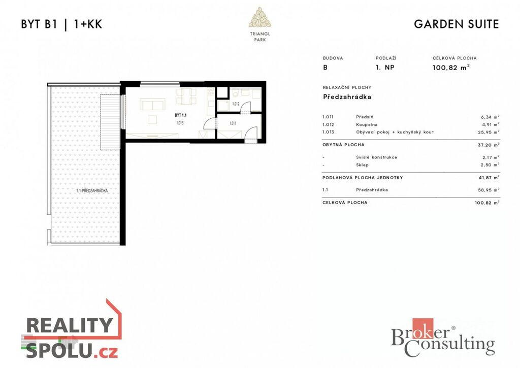 PRODEJ HOTOVÉHO BYTU V NOVOSTAVBĚ TRIANGL S PŘEDZAHRÁDKOU A GARÁŽOVÝM STÁNÍM.