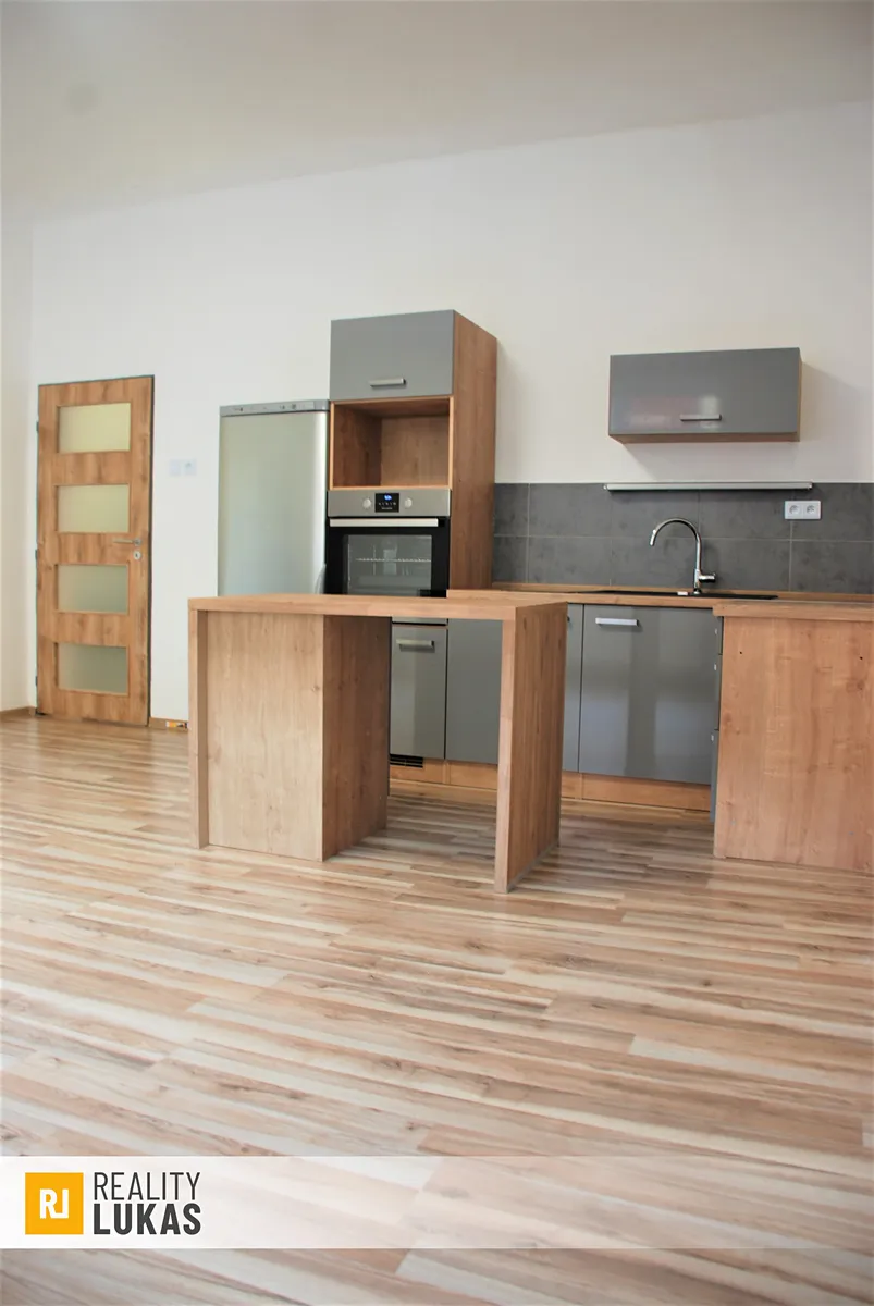 • po kompletní rekonstrukci. Elektroinstalace, rozvody topení v mědi včetně kondenzačního plynového kotle BAXI s ohřevem teplé vody. Kuchyňská linka včetně dřezu FRANKE, lednice s mrazákem, vestavěná elektrická trouba a varná deska. Plovoucí podlaha.