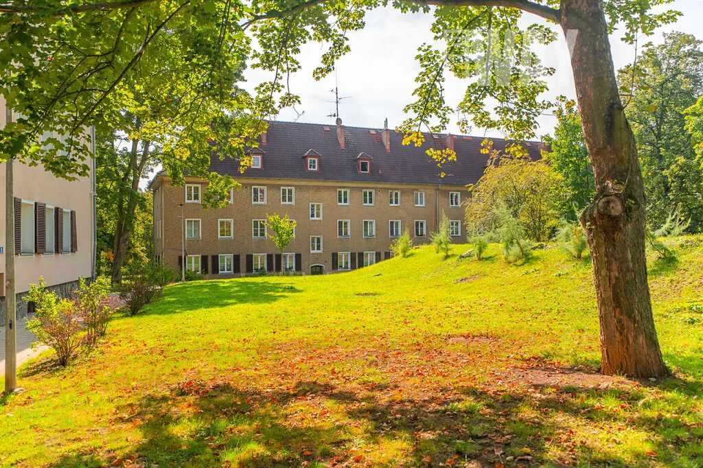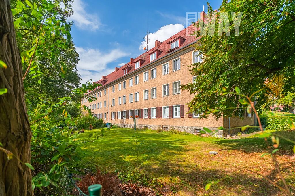 K bytu náleží oplocená soukromá zahrada, kde na 2.262 zatravněných m2 najdete vzrostlé stromy, posezení u ohniště i sušáky na prádlo. Zahrada slouží výhradně obyvatelům domu, takže pokud chcete zkombinovat výhody bydlení v bytě s možností pobývat ve vlastní zeleni, toto je ta správná nabídka.