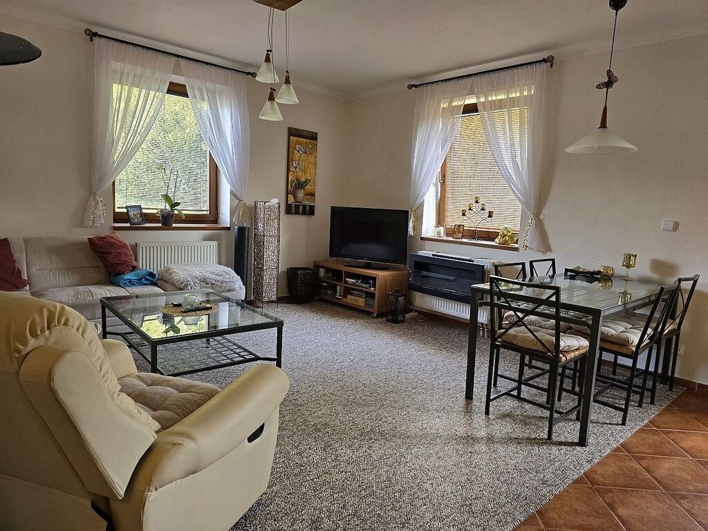 Prostorný byt se nachází v prvním nadzemním podlaží typického horského domu na klidném místě Železné Rudy.