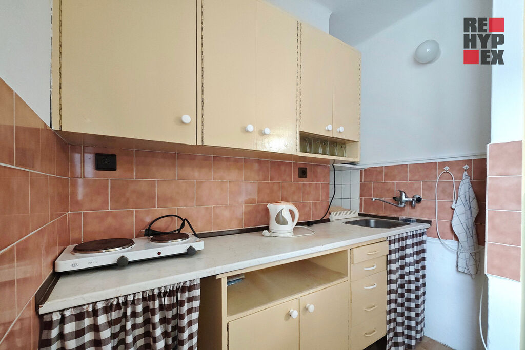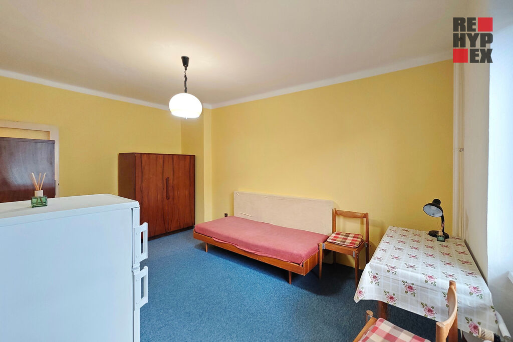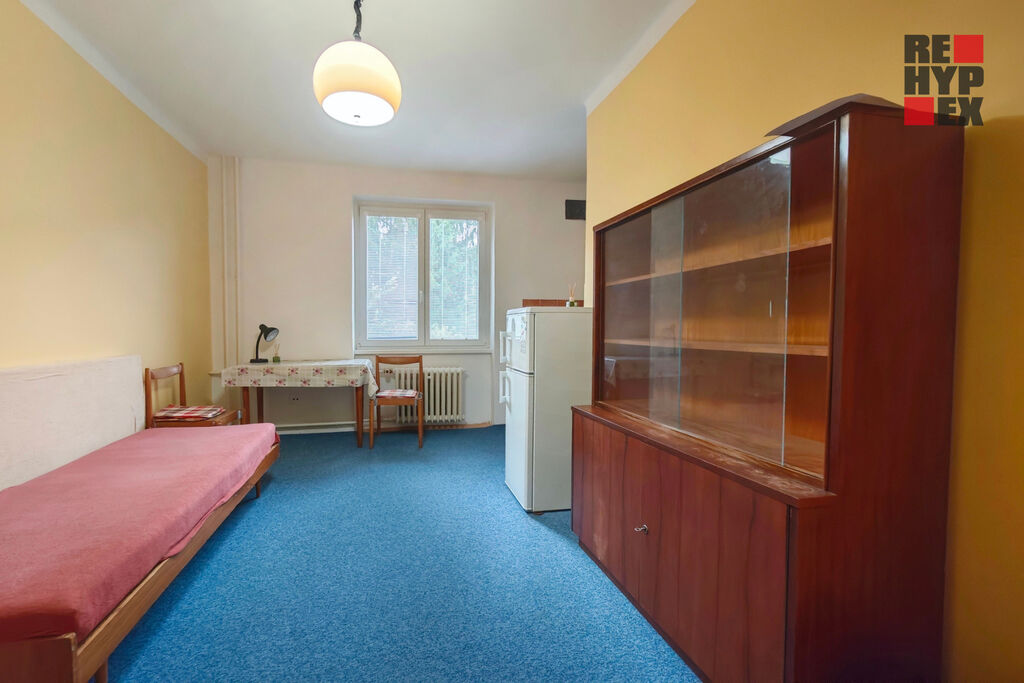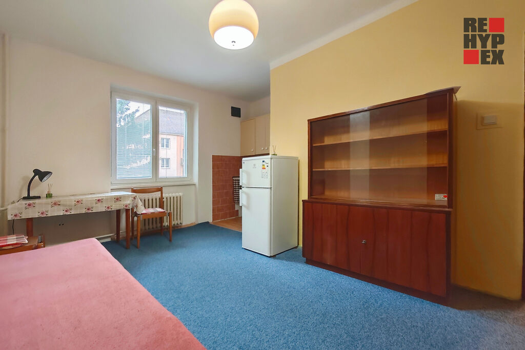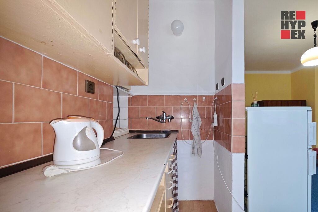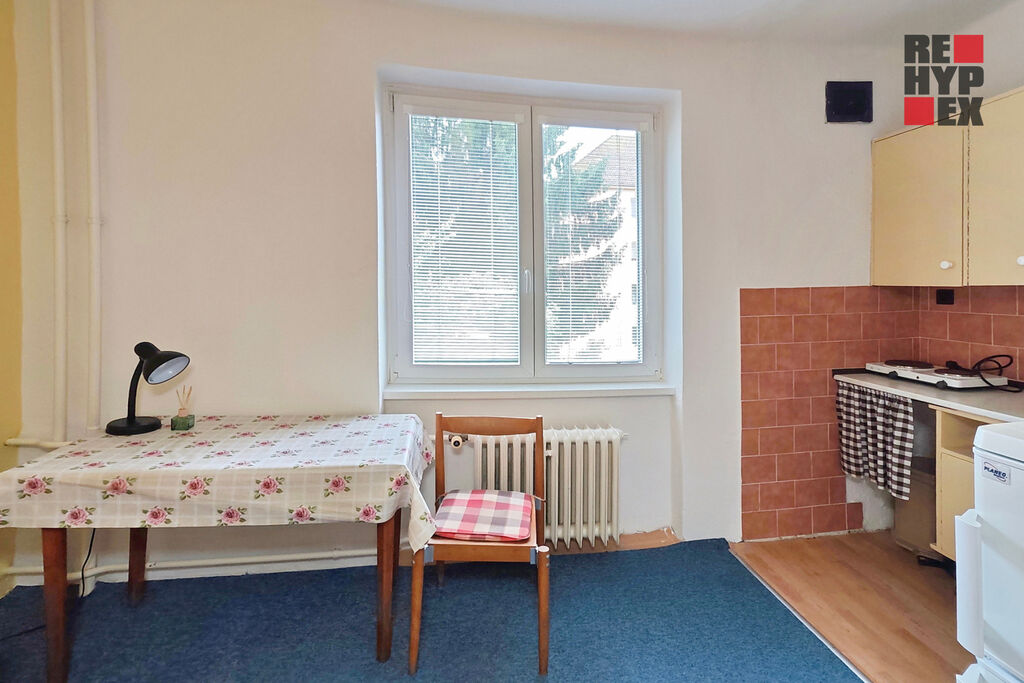 Nabízíme k pronájmu útulný byt 1+kk o celkové ploše 27,6 m² v cihlovém domě na sídlišti nedaleko městského centra. Byt se nachází v 1. patře a je v dobrém stavu. Vytápění je zajištěno ústředním dálkovým topením. Je vybavený starší kuchyňskou linkou, elektrickým vařičem, rychlovarnou konvicí, mikrovlnnou troubou, lednicí s mrazákem a stolem s dvěma židlemi. Dále koupelnou se sprchovým koutem, WC a místem pro připojení automatické pračky. V bytě je možnost připojení na internet pomocí pevného nebo optického kabelu. K bytu náleží také sklepní kóje.