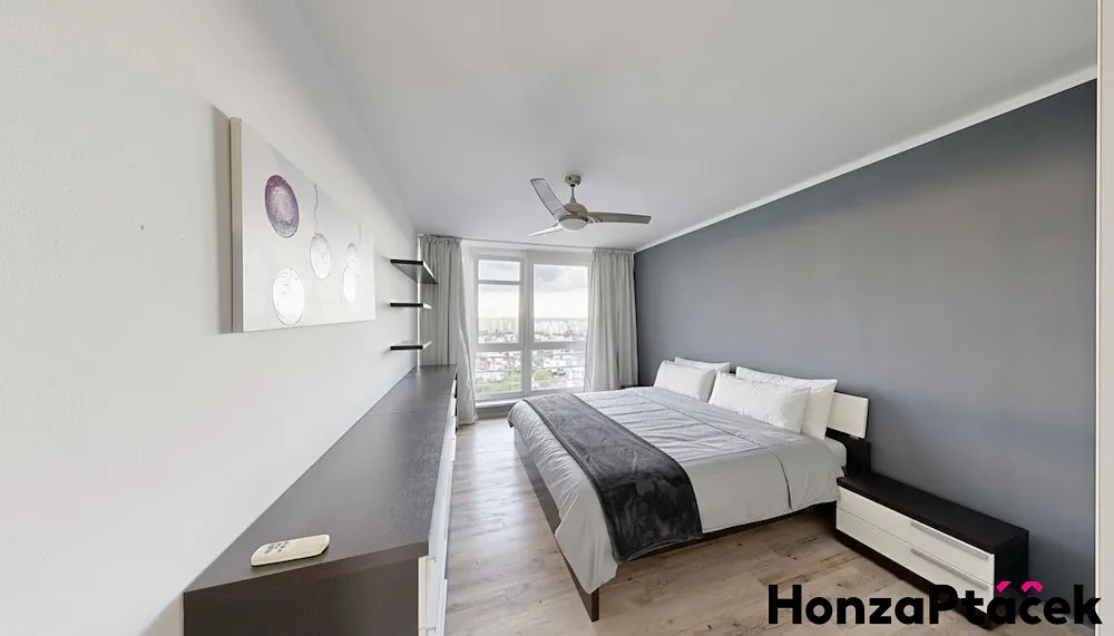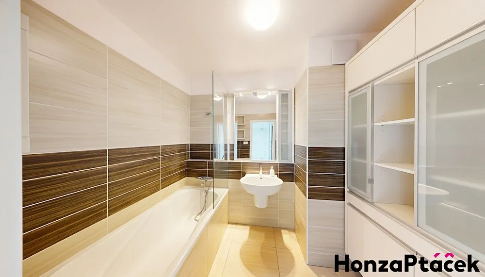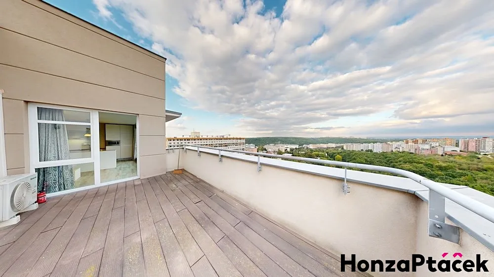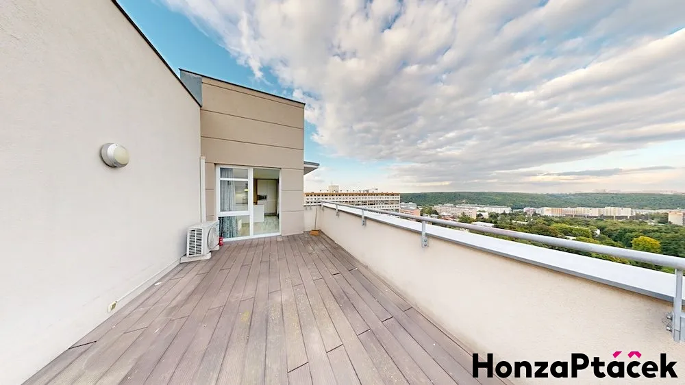 Pronájem exkluzivního bytu 3+kk s panoramatickým výhledem na Kunratický les (západ) a na centrum Prahy 4 (východ), celkem 108m2 z toho byt 89m2 + terasa 19m2 + 2 garážová stání + sklep. Byt se nachází v posledním patře nového moderního domu v Praze 4 Krči v blízkosti IKEMU a Kunratického lesa. Z terasy, obýváku a jídelny je nádherný výhled do parku na Kunratický les. Z ložnice a z pokoje je výhled na centrum Prahy 4. Byt je kompletně, moderně, účelově a vkusně zařízen. Kvalitní nábytek - vše zakázková výroba. K vybavení bytu dále patří kožená sedací souprava (bude dodána), postele, vestavěné skříně, jídelní stůl, židle, televize, vysavač, varná konvice, základní nádobí, žehlička, pračka, sušička, moderní kuchyňská linka s vestavěnými spotřebiči - myčka, mikrovlná trouba, polyfunkční trouba, sklokeramická deska, mrazák, lednice, klimatizace, pračka + sušička. Veškeré zařízení a vybavení bytu je moderní a velmi kvalitní. K bytu náleží garážové stání a sklep v 2.PP - bezpečnostní dveře. Dům se nachází v blízkosti několika lesů - Kunratický, Lhotecký, Kamýcký, Krčský a nedaleko přírodního parku Modřanská rokle. Jedná se o lokalitu s kompletní občanskou vybaveností a výbornou dostupností a to jak centra Prahy, tak Jížní spojky a Pražského okruhu. V blízkosti domu je stanice MHD, několik supermarketů, škol, školek, sportovních areálů, restaurací, pošta, apod. Byt je ihned k nastěhování.