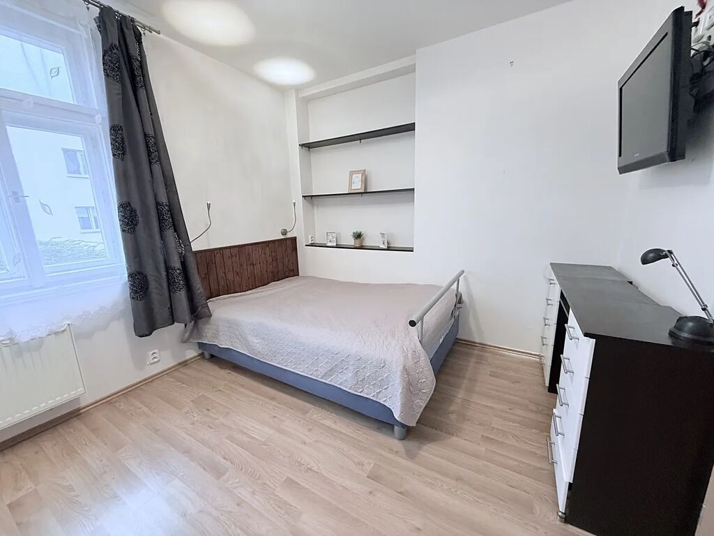 Byt je částečně vybavený a díky své dispozici poskytuje dostatek prostoru a pohodlí. K dispozici je velký samostatný obývací pokoj, ložnice s vlastní koupelnou, samostatná toaleta, menší kuchyňka a prostorná chodba. V kuchyni je nová lednička a nová menší pračka. Součástí vybavení jsou také vestavěné skříně, které zajišťují dostatek úložných prostor. Byt je ideální pro pár, který hledá klidné bydlení v dobré dostupnosti do centra.