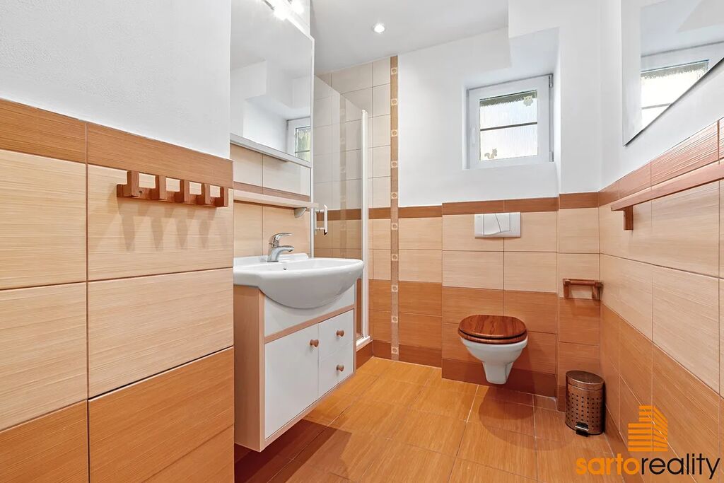 komora a dále galerie s vestavěnou skříní. K bytu též náleží dva velké sklepy/suterén. místnosti, kde je dostatek prostoru pro uložení např. veškerého sportovního vybavení (kola, lyže, paddleboardy atd.), dále třeba zimních pneu, ovoce a zeleniny a další.