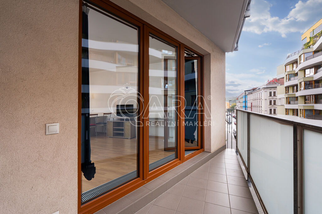 Nabízíme k pronájmu moderní a světlý byt 2+kk o ploše 56,9 m² s balkonem (5,5 m²), který se nachází ve 2. patře novostavby v ulici Kurta Konráda 2445/7, Praha 9 – Libeň.