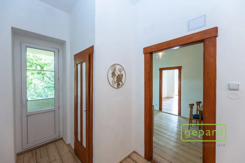 Byt se nachází ve 2. patře historického bytového domu. Celý dům prošel postupně rekonstrukcí: nový střešní plášť, fasáda (z vnitrobloku včetně zateplení), plastová okna, rozvody elektřiny a stoupačky.