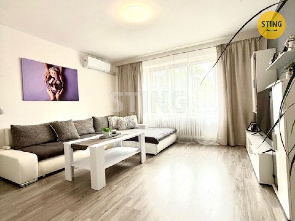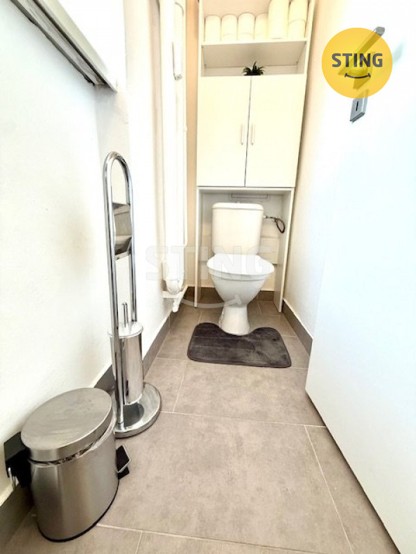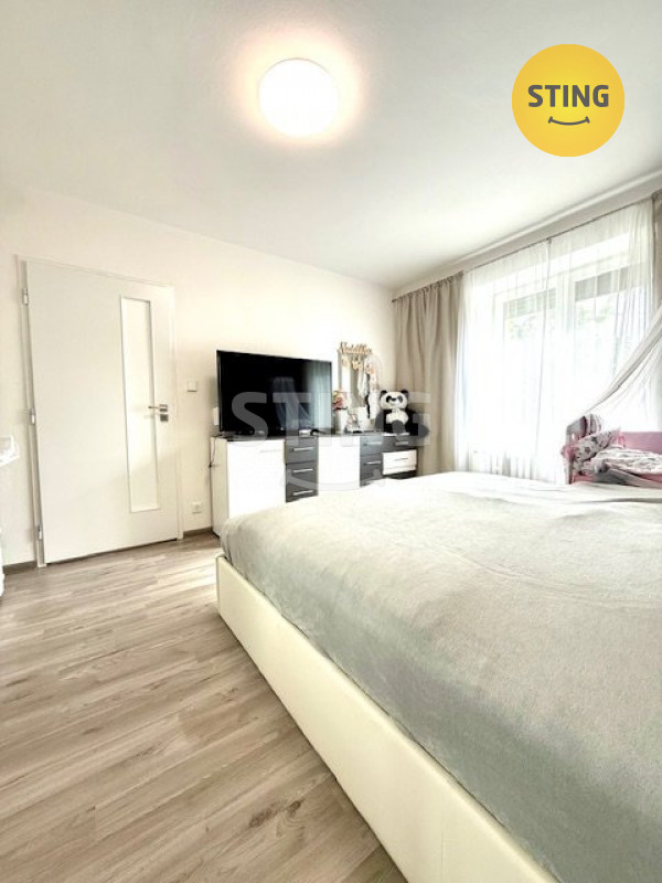 Dispozice bytu je prakticky řešená – z prostorné chodby vstoupíte do koupelny s vanou a umyvadlem, kde je umístěn plynový bojler pro ohřev vody, dále na samostatné WC, do kuchyně s jídelním koutem a obývacího pokoje vybaveného klimatizací. Z obývacího pokoje je přímý vstup do ložnice, kde jsou instalovány venkovní žaluzie zajišťující tepelný komfort i soukromí.