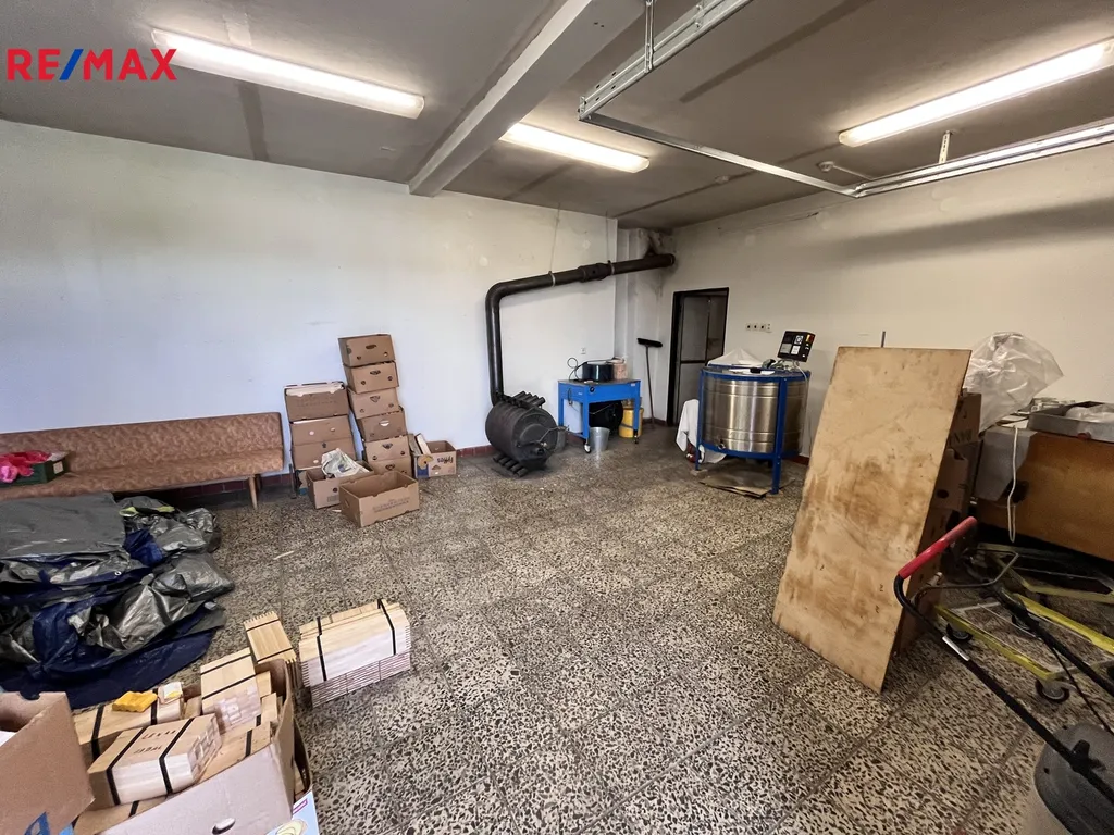 Jedná se o prodej objektu občanské vybavenosti v minulosti sloužícího jako prodejna potravin, následně upraveného na dílnu a sklady. Objekt je tvořen hlavním prostorem 45,63m2 s el. ovládanými vjezdovými vraty šíře 2,55 a výšky 2,51m2, dále skladem 24,60m2, spojovací chodbou 11,90m2, skladem 20m2, menším skladem 4,84m2, koupelnou 4,77m2, místností 2,26m2, WC 1,08m2, nákladovou rampou v zadní části 7,00m2 a skladem z rampy 5,83m2. Stropy mají výšku 2,91m2. Objekt je napojen na obecní vodovod, střešní krytinu tvoří vlnitý eternit. Okna jsou v části nova Euro, ostatní původní dřevěná. Podlahy tvoří beton v částech s dlažbou. K objektu je zpracován projekt pro rodinný dům 4+kk s příslušenstvím bez využití obytného podkroví. Cena zahrnuje kontejner před objektem o rozměru 12x2,5m. Pro více informací volejte makléře nabídky.