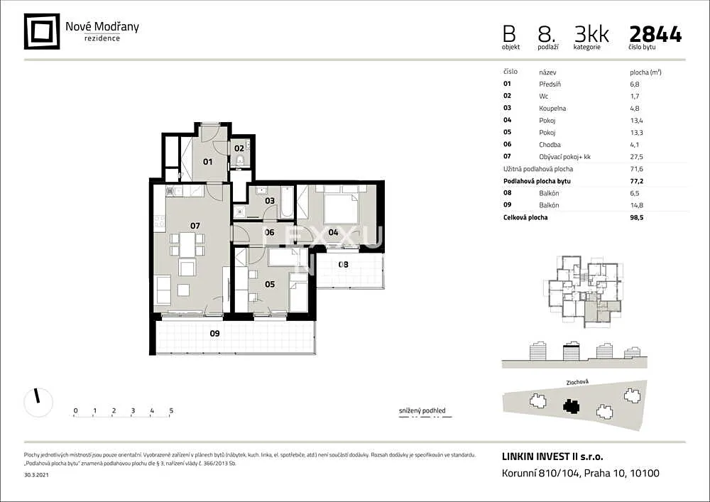 Nové Modřany jsou unikátní projekt, který v sobě spojuje komfort velkoměsta a svobodu přírody. Nadstandardní byt 3+kk o velikosti 76,8 m² vás okouzlí balkónem, který developer zvětšil, aby byt propojil s okolní zelení. Součástí projektu Nové Modřany je venkovní posilovna, kavárna, 3 dětská hřiště s trampolínami a na východní straně vyrůstá park. V projektu také najdete kočárkárnu, stojany na koloběžky a elektrické nabíječky na auta.