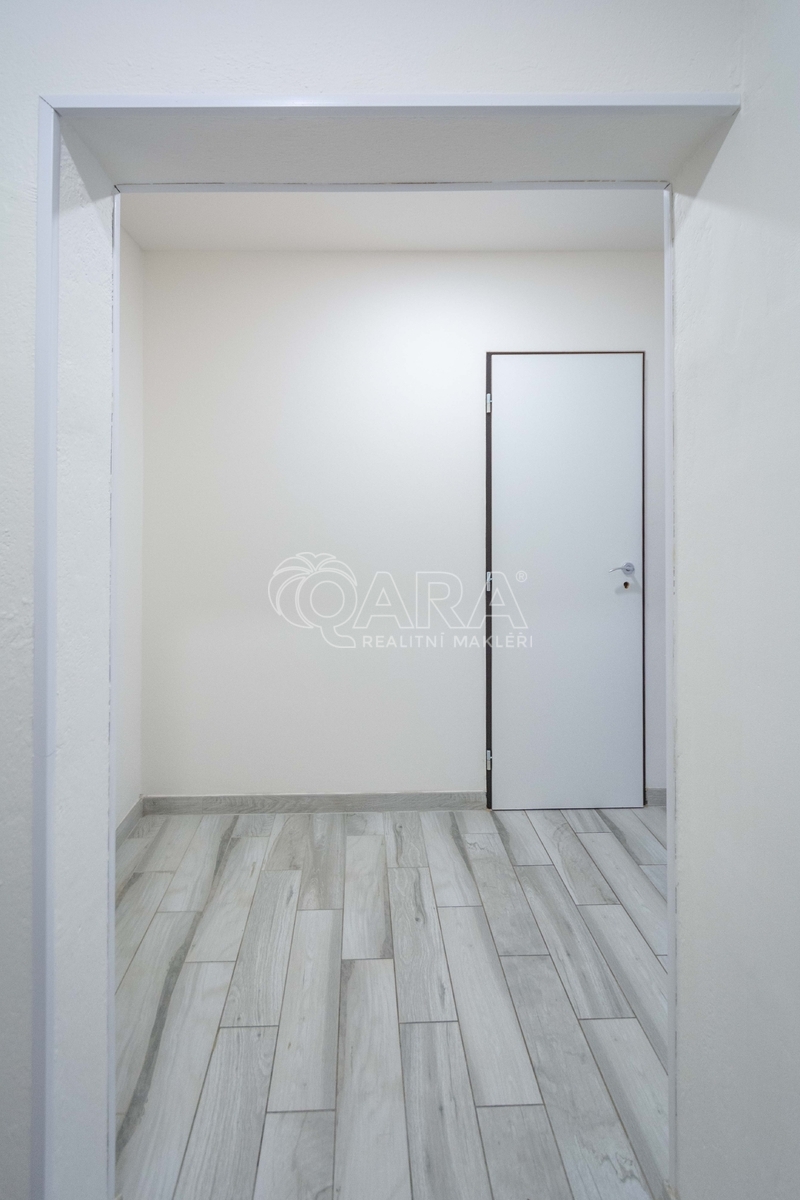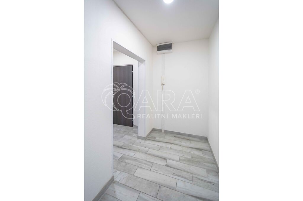 Dispozice bytu, který prošel před třemi lety rekonstrukcí: vstupní chodba, šatna, ložnice se vstupem na lodžii, spojená koupelna s WC, obývací pokoj a kuchyně. V bytě kuchyňská linka s el. troubou, jinak bez vybavení.