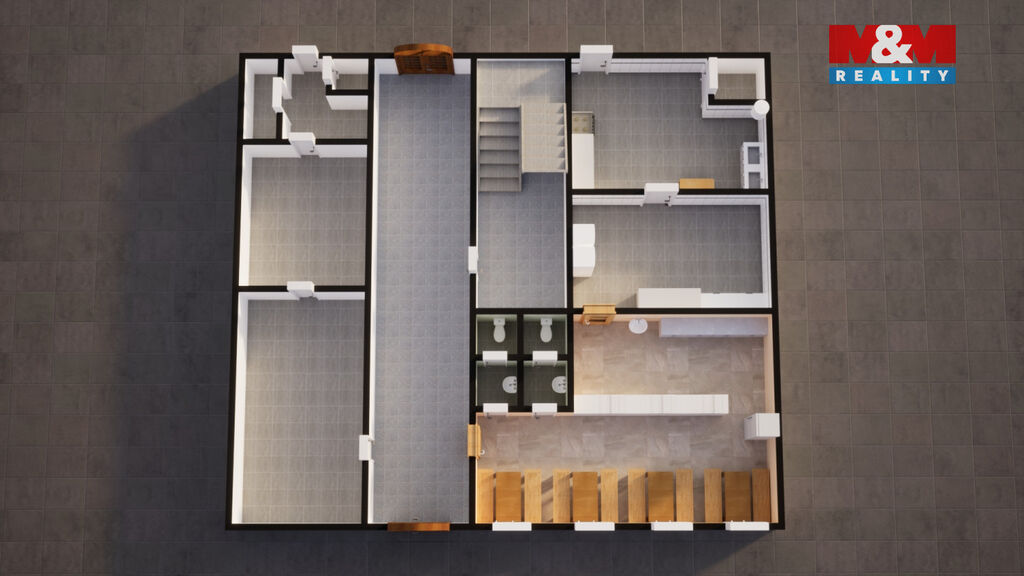 V prvním patře jsou umístěny dvě bytové jednotky 2+1 a 3kk, které jsou dlouhodobě pronajaté.