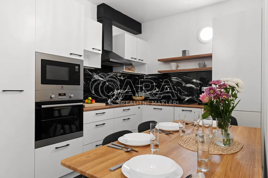 Kuchyňská linka je vybavena všemi potřebnými spotřebiči, takže vás nečekají žádné zásadní investice.