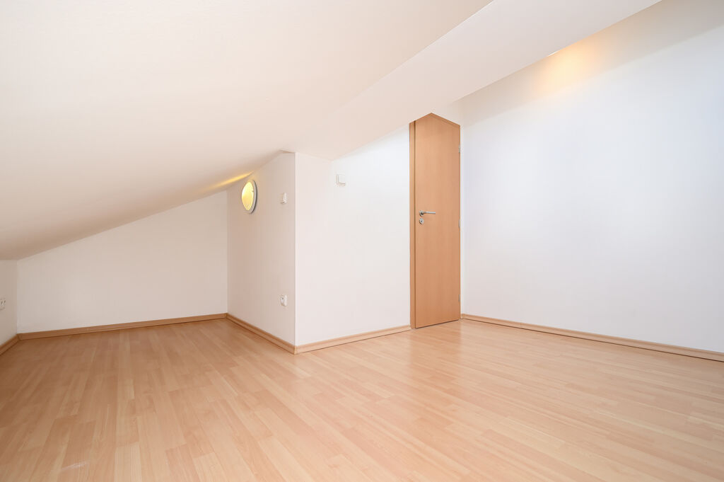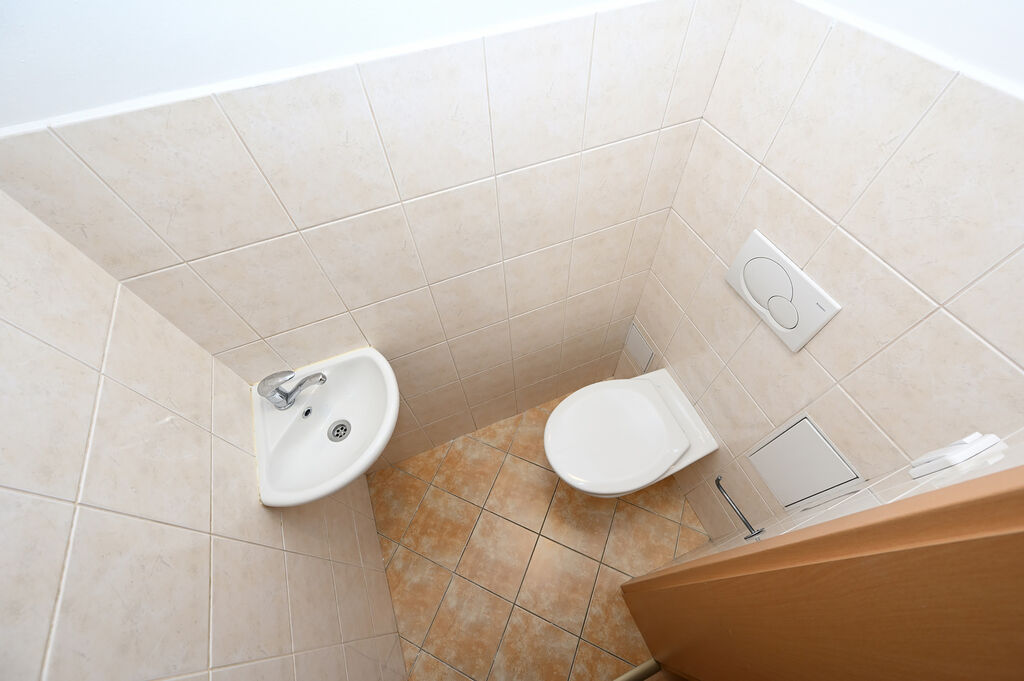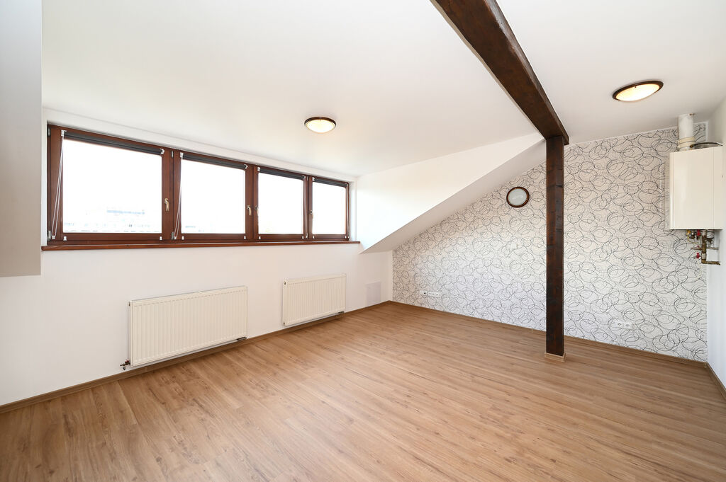 Ve spodním patře se kromě chodby nachází také druhá toaleta s umyvadlem a prostorný obývací pokoj s kuchyňským koutem, který je vybaven novou myčkou nádobí, sklokeramickou varnou deskou, elektrickou troubou a digestoří. Součástí pronájmu není pračka ani lednice. Dalším benefitem je orientace do klidného vnitrobloku, takže se nemusíte obávat hluku z ulice. Ohřev vody i vytápění bytu zajišťuje plynový kotel.