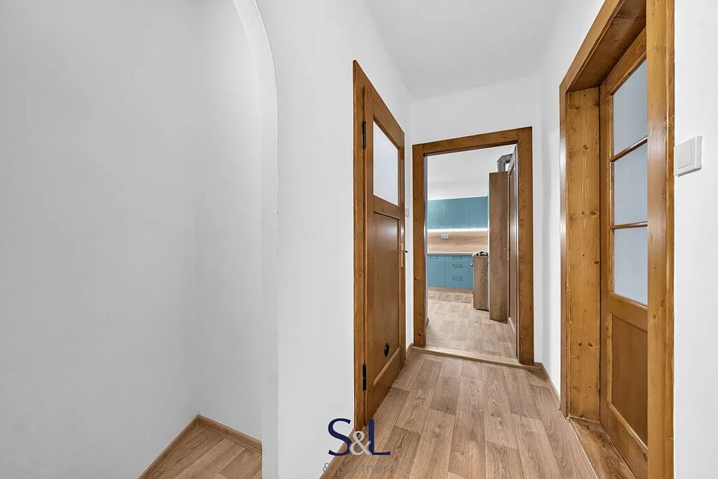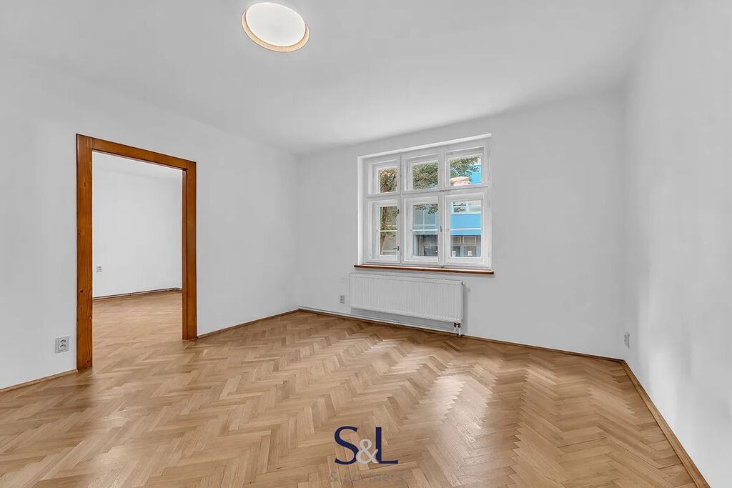 Byt má příjemnou atmosféru díky renovovaným parketám a zachovaným dřevěným prvkům – interiérovým dveřím a parapetům, které mu dodávají teplo a charakter.