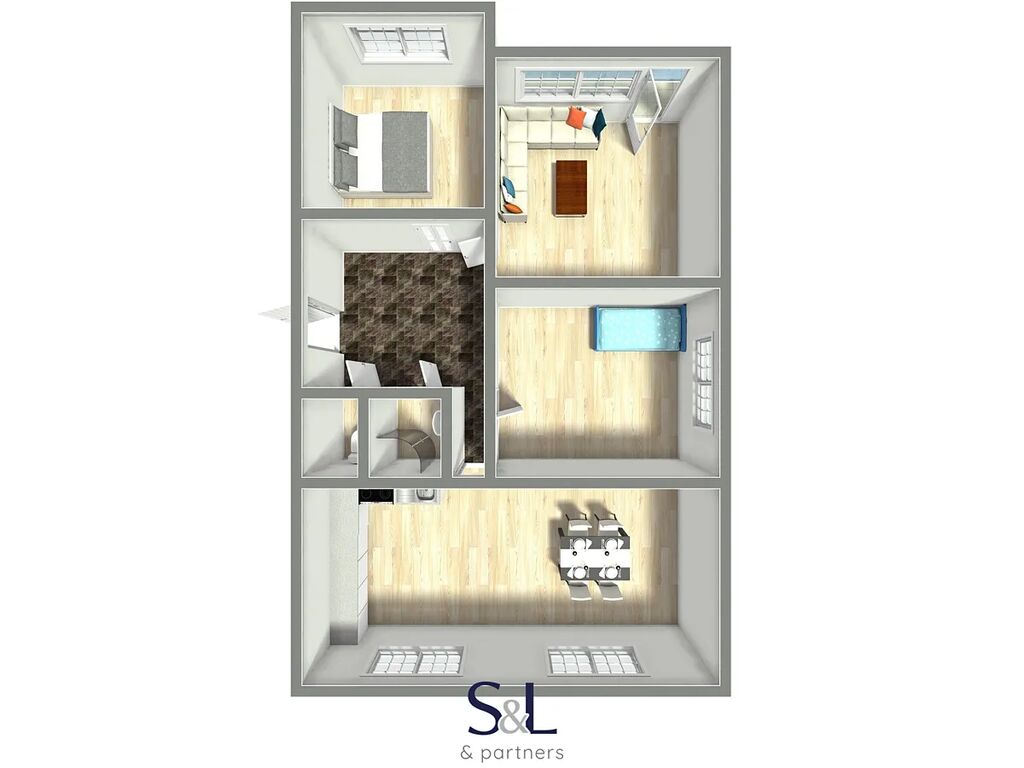 Dispozice je tvořena z ložnice, obývacího pokoje, dětského pokoje, prostorné chodby, kuchyně, koupelny a WC. Obrovskou výhodou je, že byt disponuje balkónem, ze kterého je nádherný výhled do zeleně. K bytu patří sklepní kóje. Nastěhování je možné ihned.