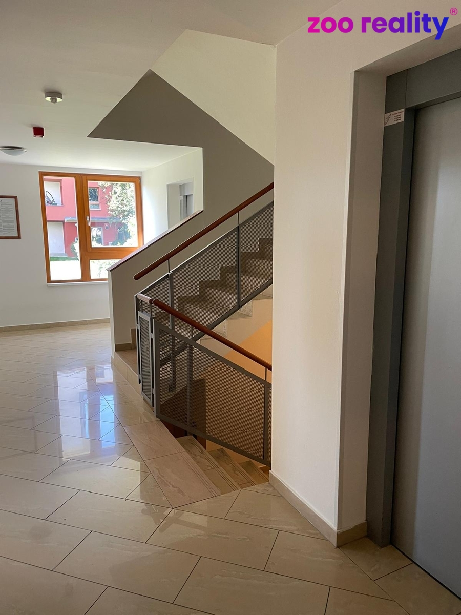 Dispozice bytu se skládá z prostorného obývacího pokoje s kuchyňským koutem (25,8m2), jehož prosklené francouzské dveře vedou na terasu a do vlastní zahrady o rozloze 56 m², což poskytuje skvělé možnosti pro relaxaci a odpočinek v soukromí. Dále byt zahrnuje ložnici (14,4m2), koupelnu s pračkou a samostatné WC. Nechybí zde ani úložný prostor v podobě komory, což je praktickým řešením pro uskladnění potřebných věcí. Bytový dům má moderní výtah.