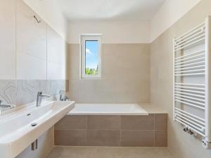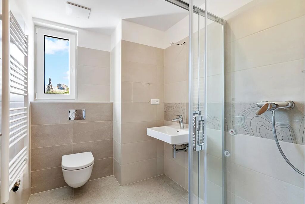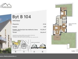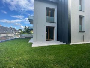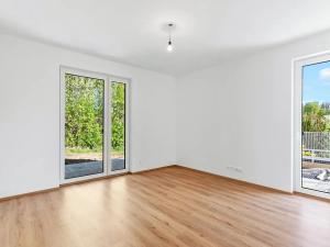 Díky francouzským oknům s izolačními trojskly je tento byt nádherně přirozeně prosvětlen a umožňuje vstup na zahradu ze všech místností. Byt je vybaven podlahovým vytápěním s termostatem v každé místnosti, což vám umožní efektivní regulaci teploty podle vašich potřeb. Kuchyňská linka není součástí vybavení, můžete si ji navrhnout přesně podle vlastních představ a stylu. K bytu náleží prostorná sklepní kóje umístěna v 1. podzemním podlaží.