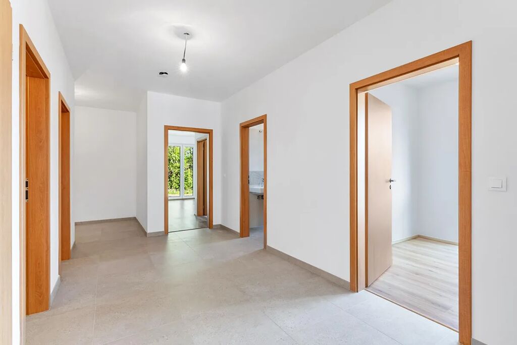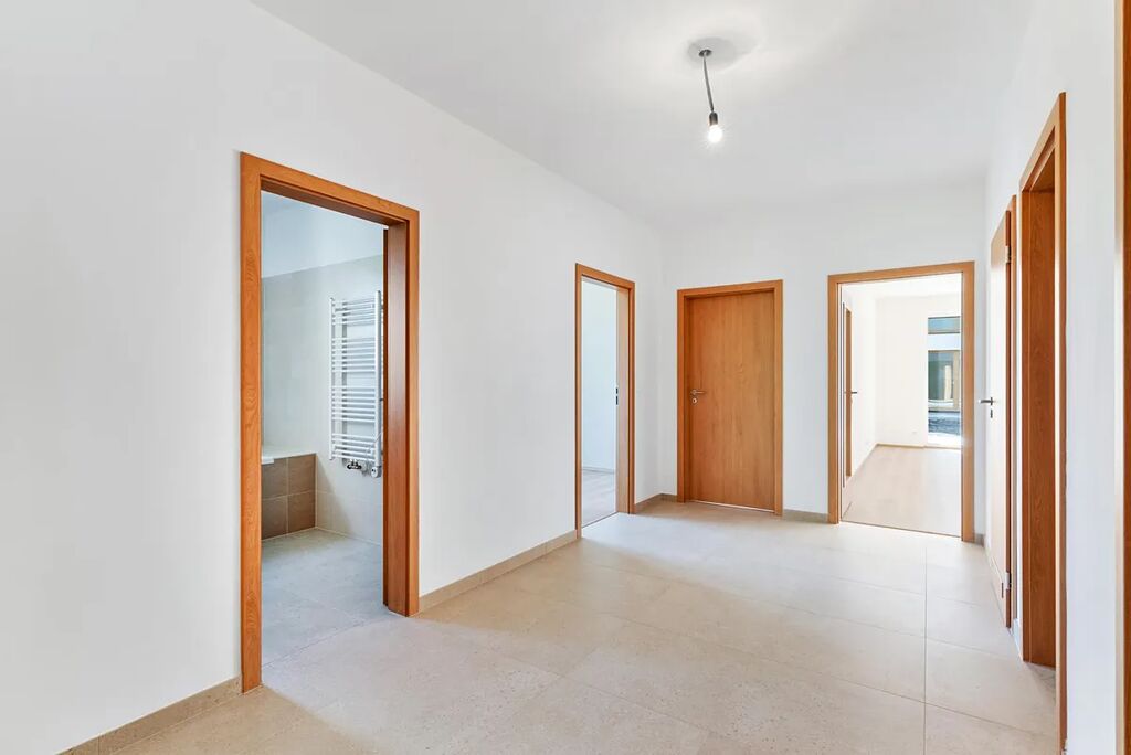 Samotný byt nabízí harmonii prostoru, světla a soukromí. Hned při vstupu vás okouzlí velká hala, která zajišťuje přímý vstup do všech obytných i užitkových částí bytu. Dispozice bytu je řešena tak, aby nabízela dostatek místa pro každého člena domácnosti. Obývací pokoj plynule navazuje na kuchyňský kout a společně tvoří dokonalé místo pro rodinná setkání i chvíle odpočinku. Dva dětské pokoje, 2 šatny, prostorná koupelna s vanou a dvěma umývadly i ložnice s vlastní koupelnou a vstupem na zahradu vám zajistí maximální komfort bydlení.