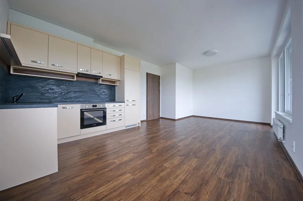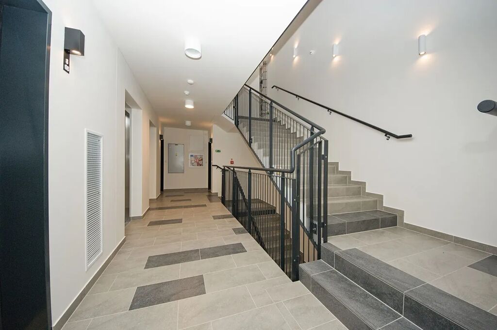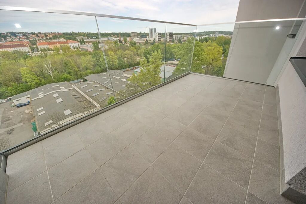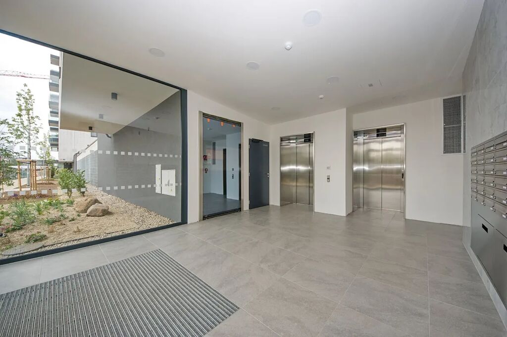 Byt 2+kk (57,5 m2) se zastřešenou terasou (6,8 m2) a garážovým stáním. 7. patro z 8 se dvěma výtahy.