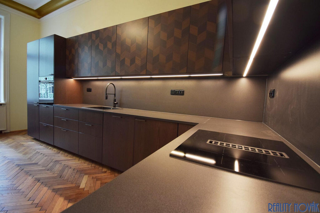 Byt k pronájmu je po kompletní velmi zdařilé rekonstrukci se zachovanými prvky původního zdobení a vybavení, které je také po renovaci. Nemovitost disponuje vstupní chodbou, obývacím pokojem s malým balkónem, kuchyní s plně vybavenou novou kuchyňskou linkou (indukční deska s odsavačem par, trouba, lednice s mrazákem, myčka nádobí a pračka), dvěma ložnicemi, 1 koupelnou (vana) a samostatnou toaletou, byt má vlastní ohřev vody a vytápění, který zajišťuje plynový kotel.
