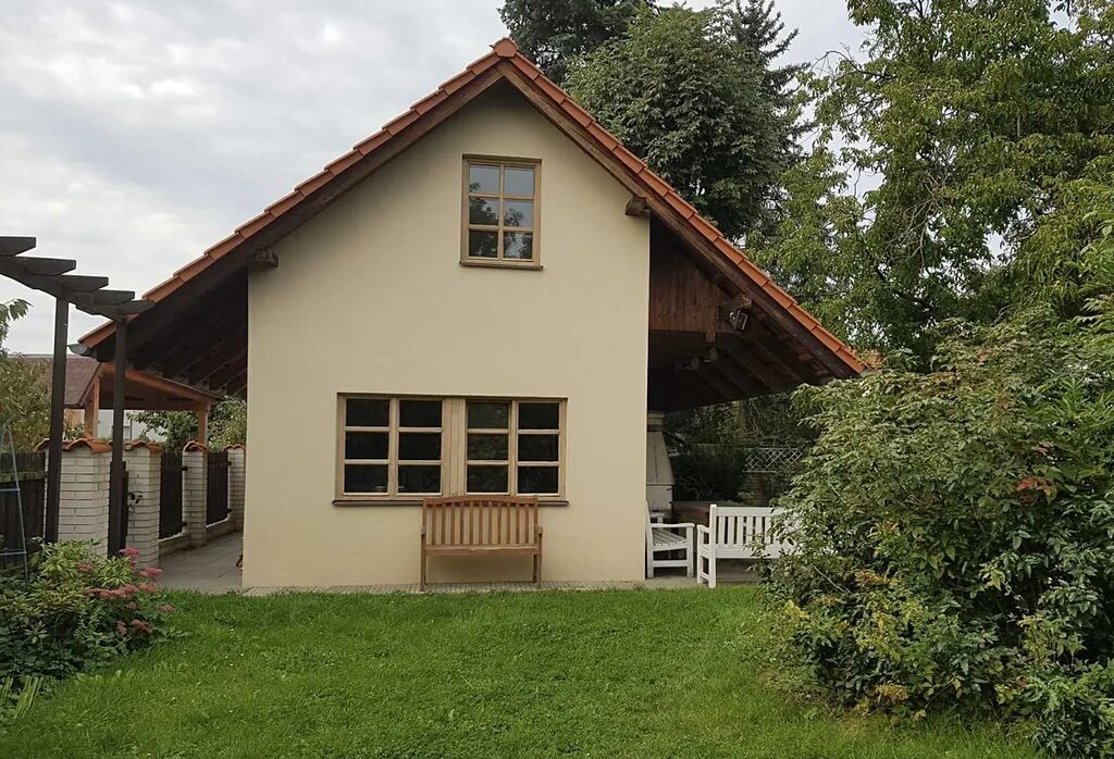 štukové omítky s malbami. U domku je venkovní posezení kryté přesahem střechy. Domek vybaven elektrorozvody.