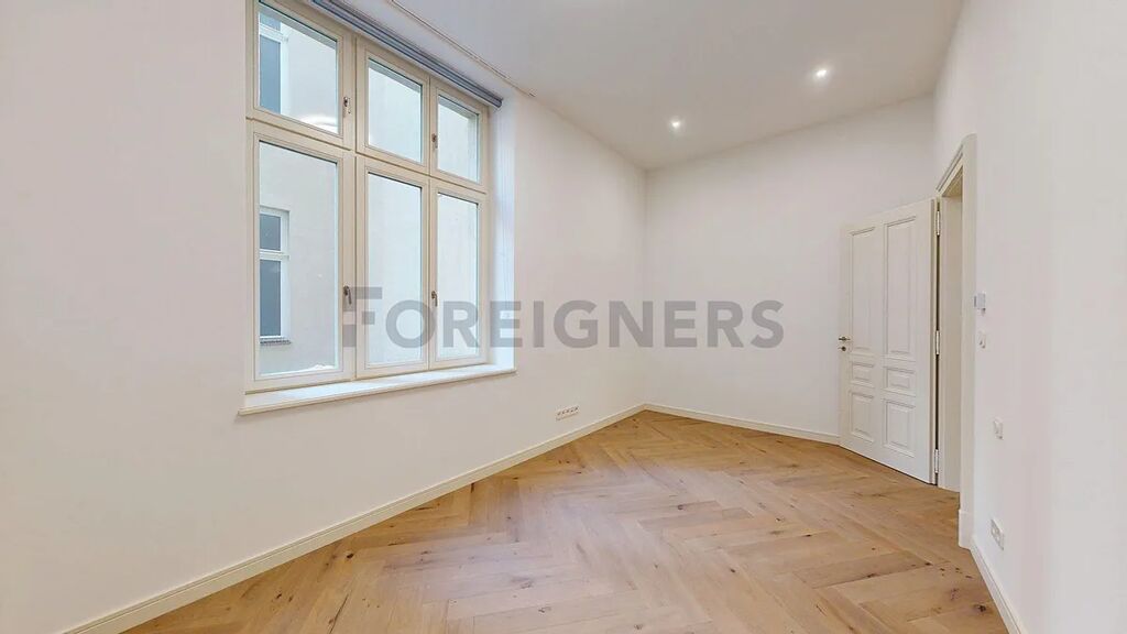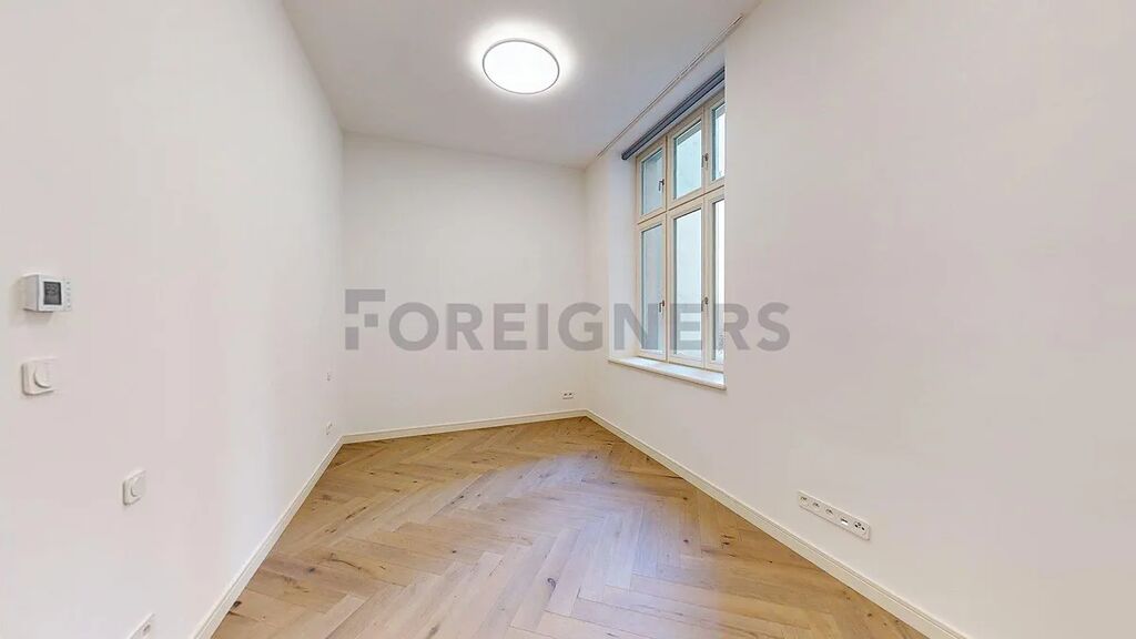 Byt bude plně vybaven kuchyňskou linkou značky STOSA včetně vestavných spotřebičů. Styl vybavení odpovídá vysokému standardu celého domu – dřevěné parkety, repasované zárubně a dřevěné dveře, kvalitní osvětlení s možností nastavení odstínu a jasu. V bytě je optický kabel, datové rozvody, videotelefon, podlahové topení s termostatem. Dovybavení bytu po dohodě s pronajímatelem možné.