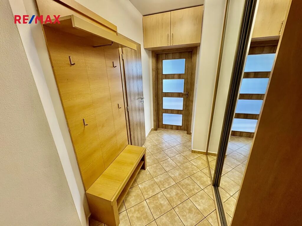 Součástí je částečně vybavená kuchyňská linka s troubou, varnou deskou a dostatkem úložného prostoru. Byt má také velmi praktickou místnost, kterou lze využít jako komoru, spíž nebo šatnu – ideální pro pohodlné uložení věcí.