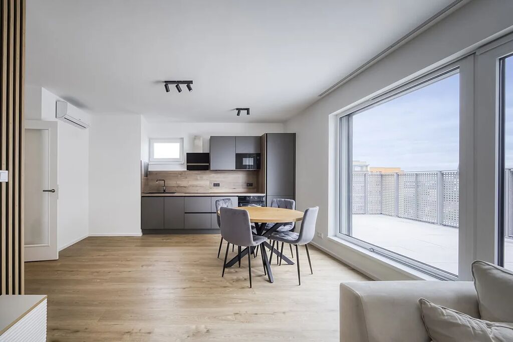 Jednotka je vybavená kvalitním designovým nábytkem a kuchyňskou linkou a je připraven k nastěhování ihned.