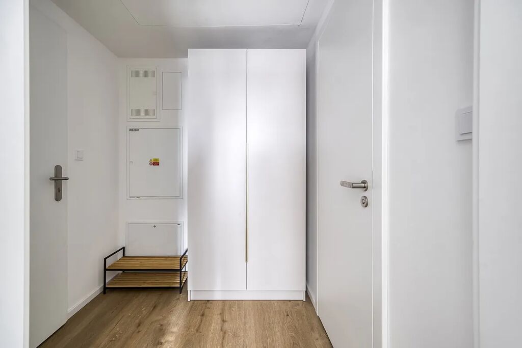 - Koupelna se sprchovým koutem a pračkou se sušičkou, předsíň s úložným prostorem.