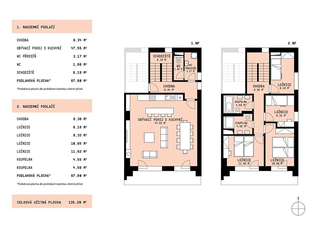 Na 135 m² se rozkládají dvě podlaží promyšleně navrženého prostoru: