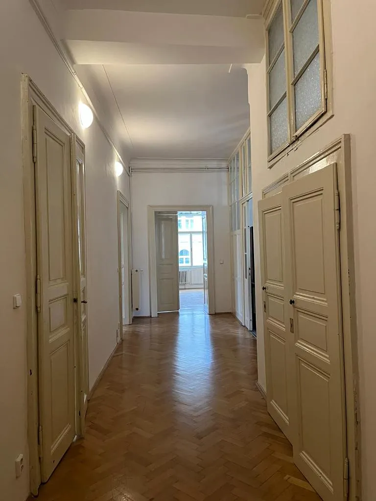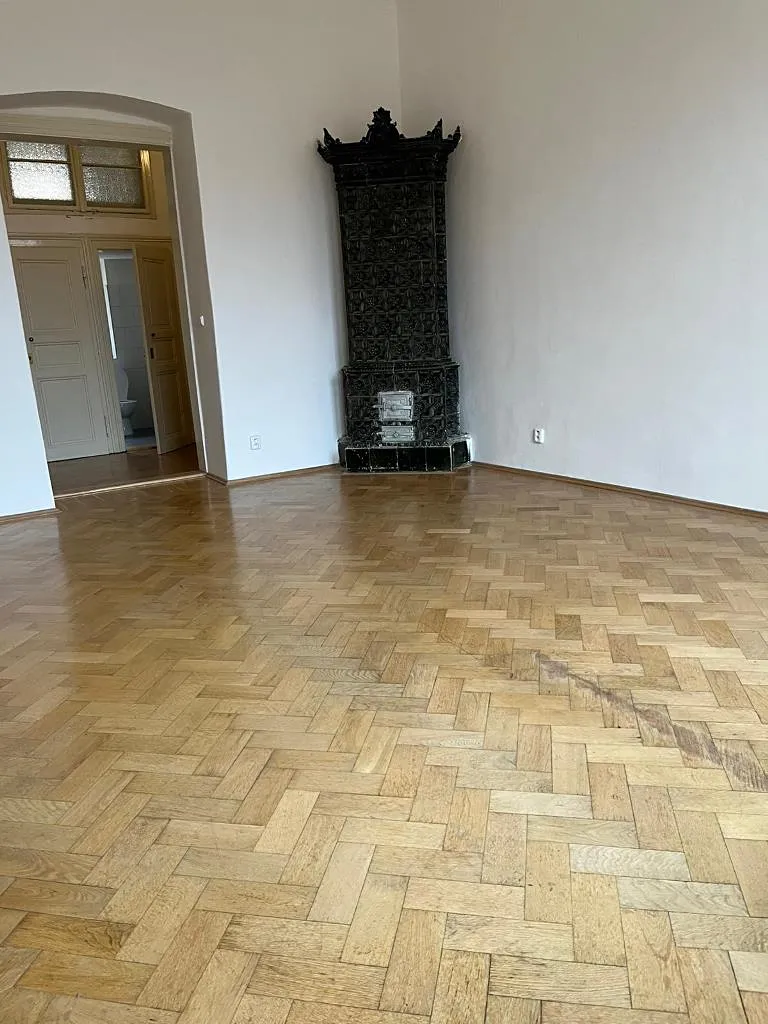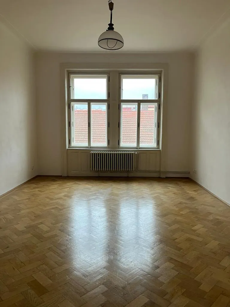 Nabízíme k pronájmu světlý a tichý byt 5+1 o obytné ploše 182 m2, který se nachází ve 3. patře cihlové budovy bez výtahu v blízkosti řeky Vltavy v Praze 1, ve čtvrti Nové Město. Okna bytu směřují do ulice. Interiér bytu nabízí prostorný obývací pokoj, čtyři samostatné ložnice, jedna se zavřenou terasou, dlouhou vstupní chodbu, velkou samostatnou kuchyň, dvě koupelny (sprchový kout, vana) a tři toalety.