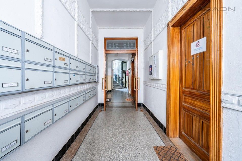 Parking před domem (modré zóny). Vynikající dopravní dostupnost - byt je situován v klidné ulici pražského Smíchova mezi stanicemi metra Smíchovské nádraží a Anděl a je ideální rovněž pro reprezentaci a kancelář firmy nebo jako investice.