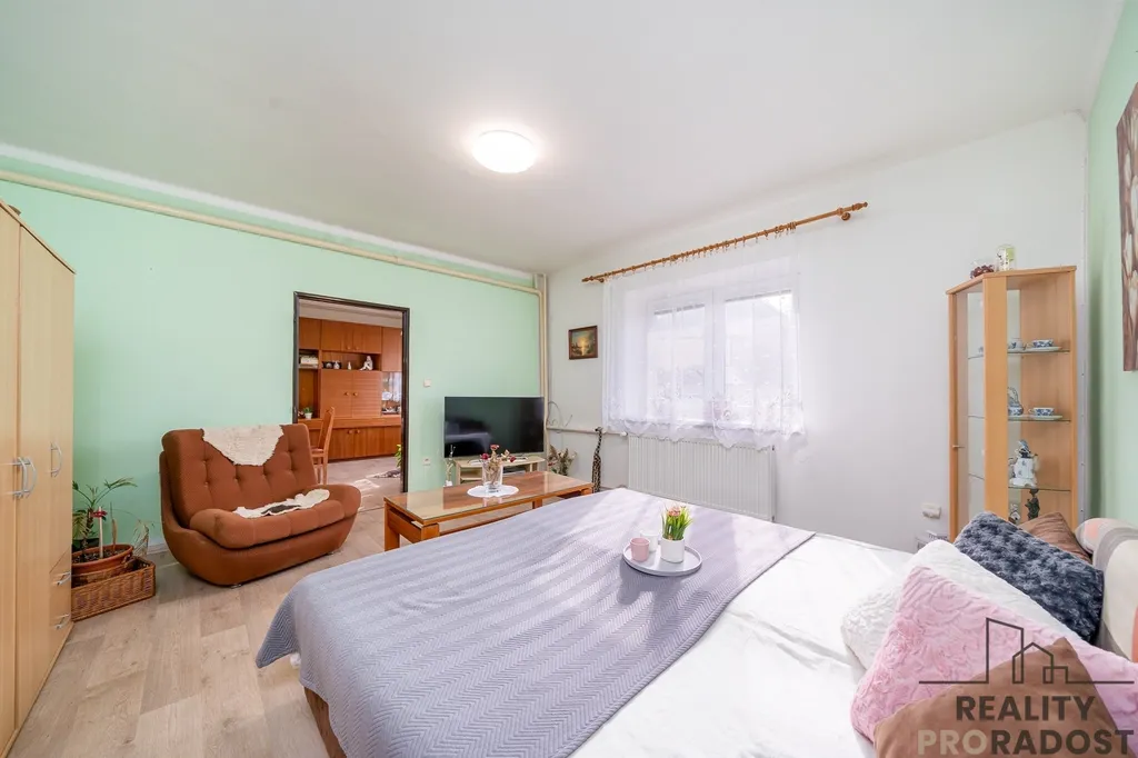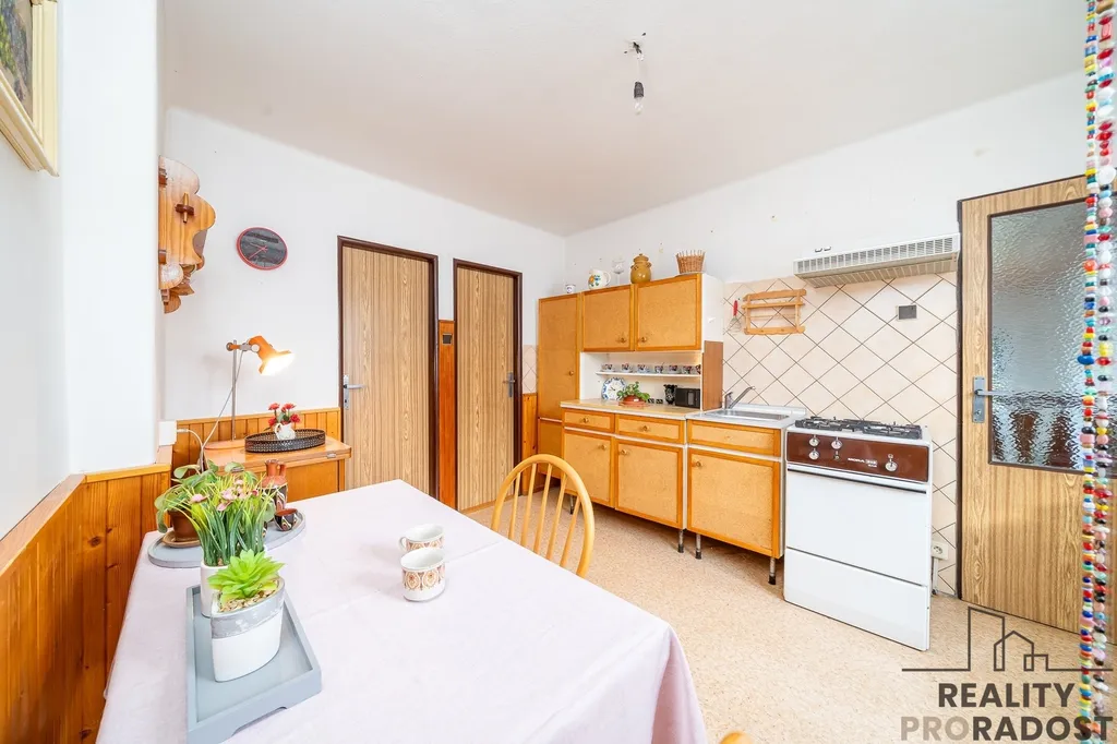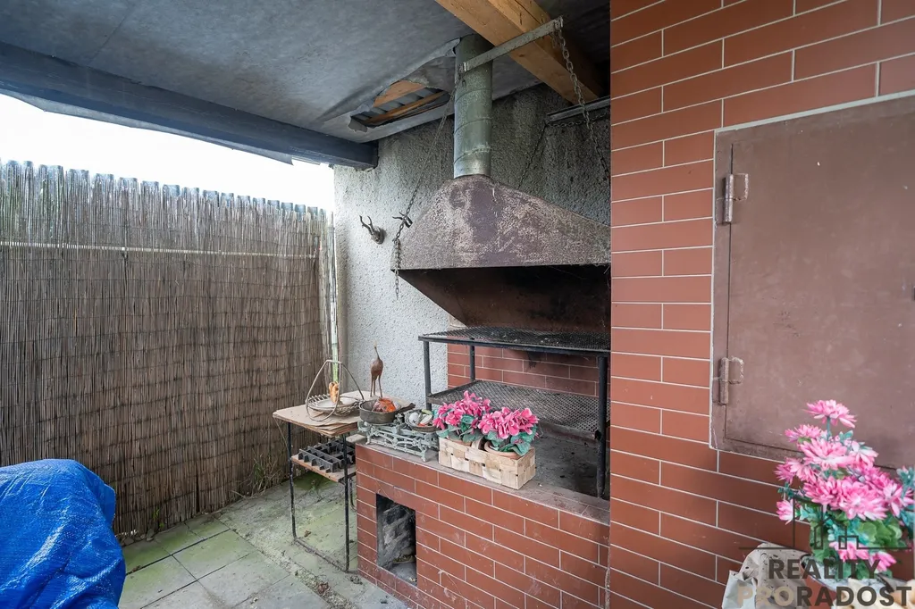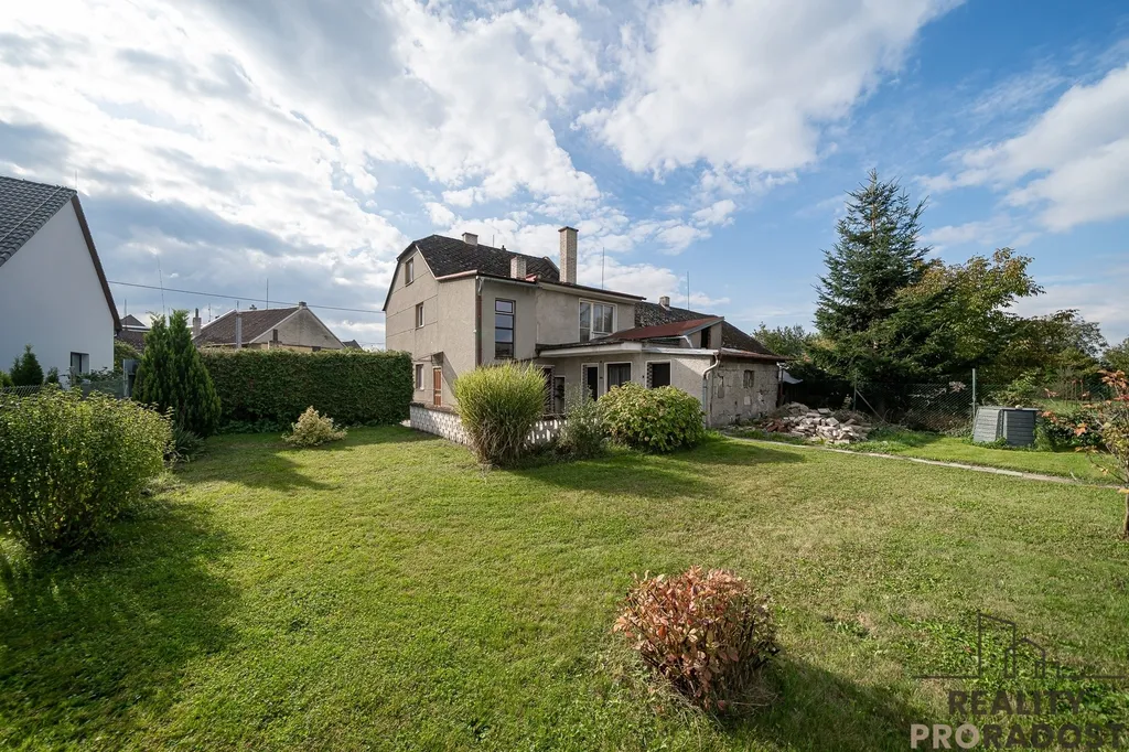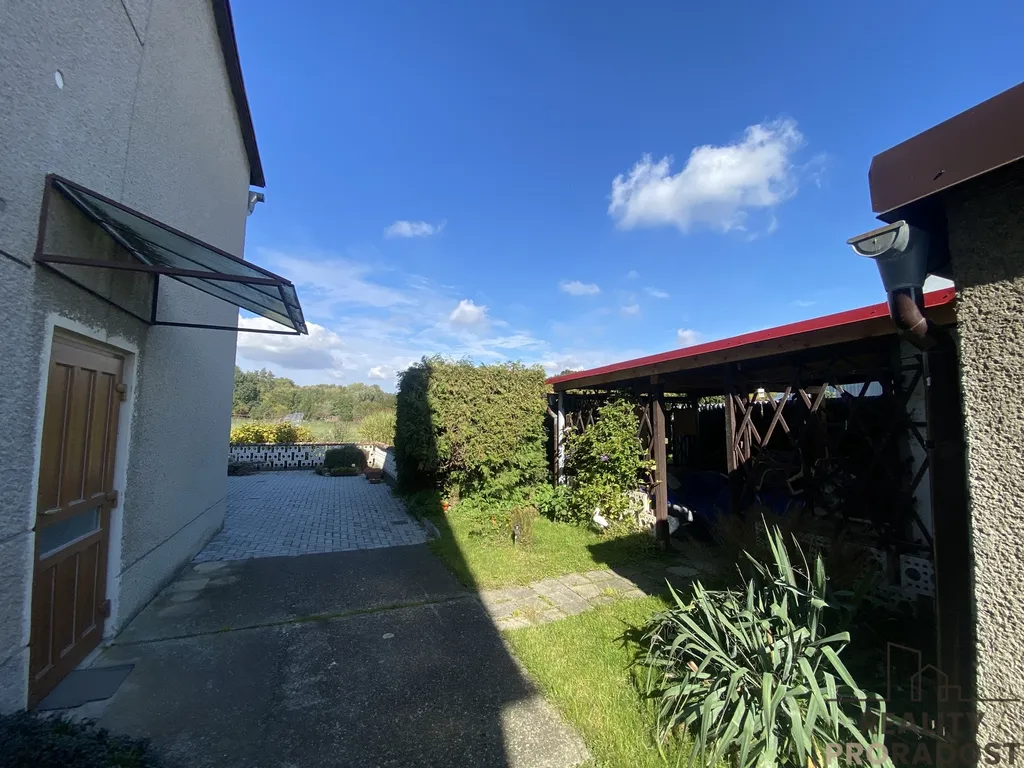 Dvougenerační rodinný dům leží na pozemku o celkové výměře 845 m2. Na pozemku se nachází také pergola s posezením a prostorná garáž, na dům navazuje technická část domu využívaná jako sklad nářadí.