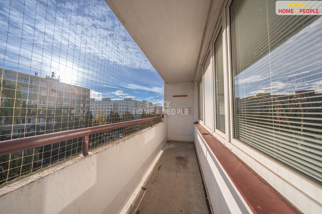 Lodžie je orientována do ulice a je vybavena ochrannou sítí proti holubům.