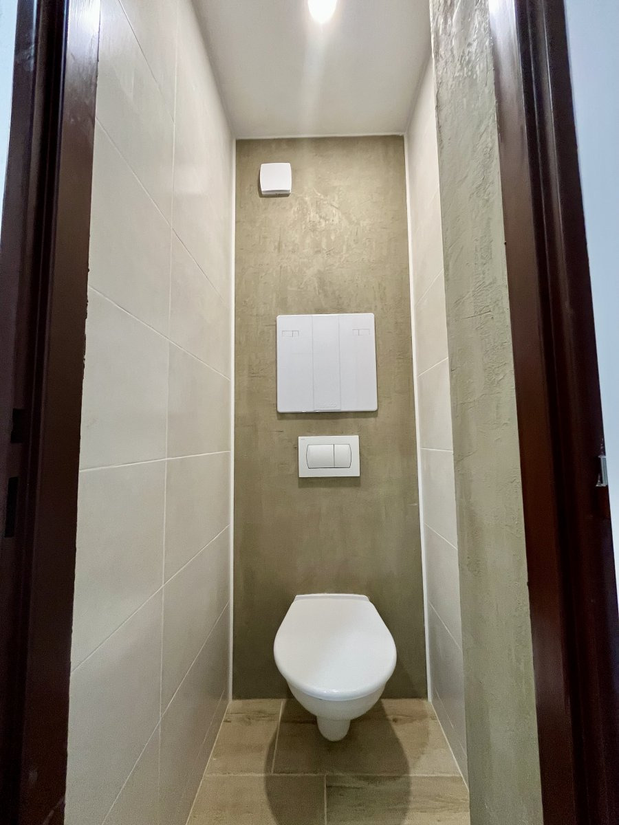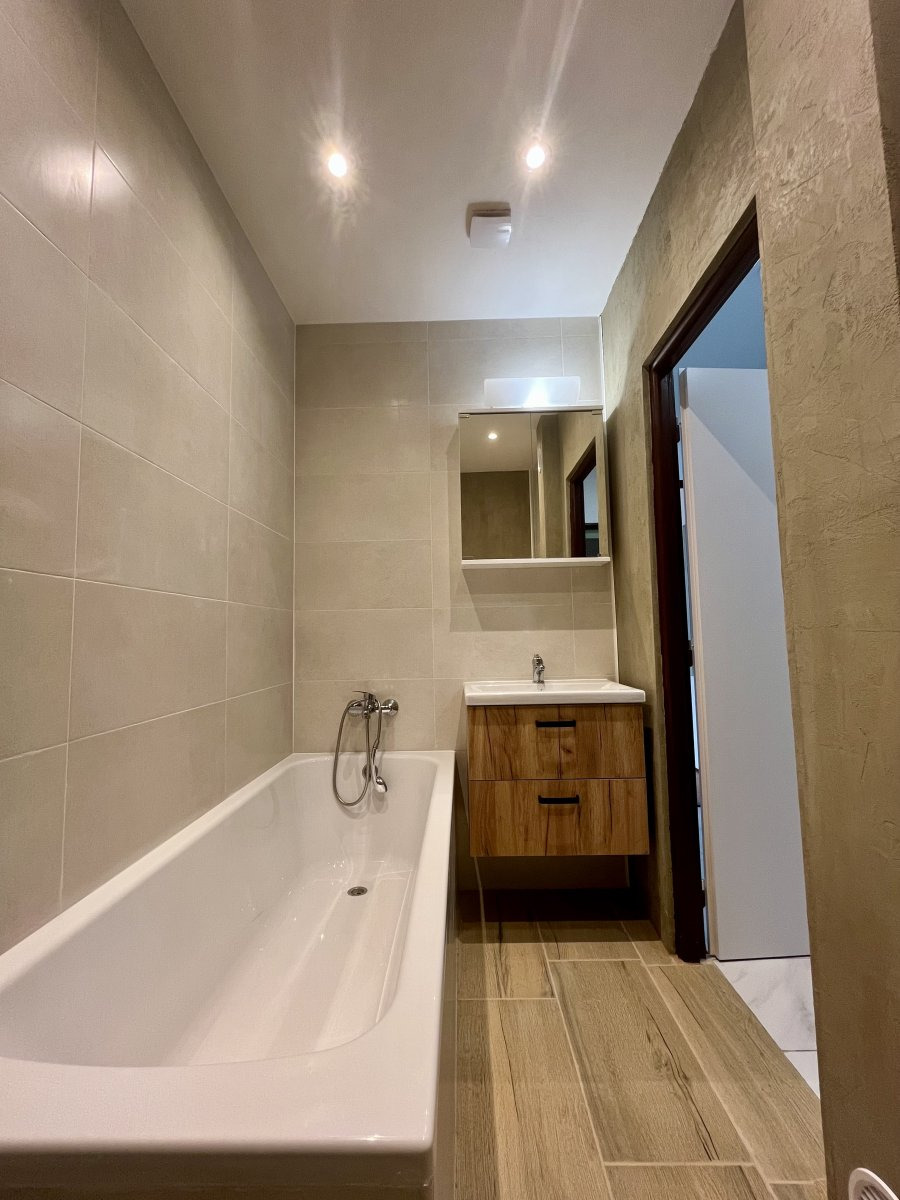 Koupelna nabízí vanu a připojení na pračku. Toaleta je umístěna samostatně.