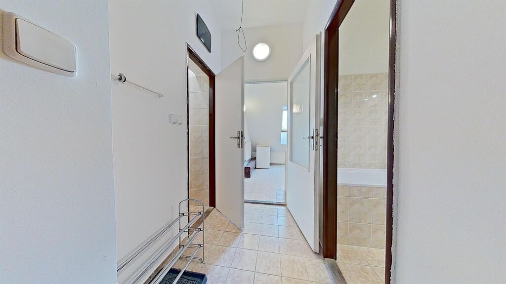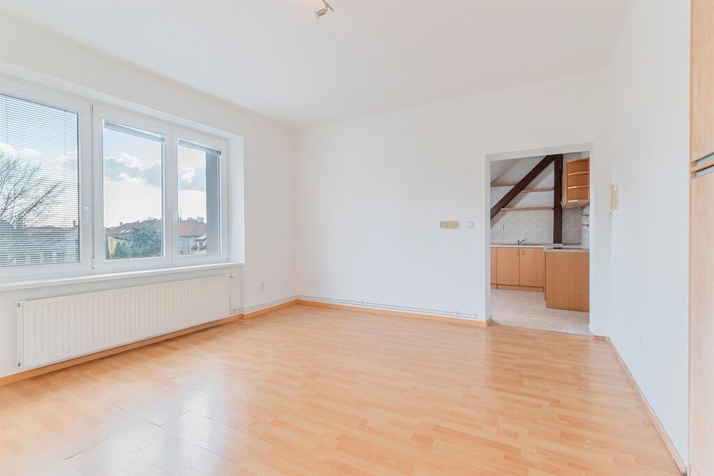 K pronájmu útulný podkrovní byt s dispozicí 1+1, který se nachází ve 2. patře (3.NP) cihlového bytového domu v klidné části města Prostějova ul. S.Manharda.