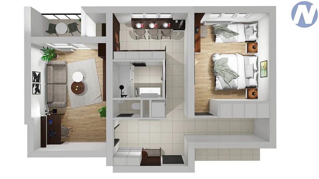 Tento byt je kompletně hotový, bez nutnosti dalších investic – stačí si ho vybavit nábytkem podle vlastního vkusu a začít hned bydlet.